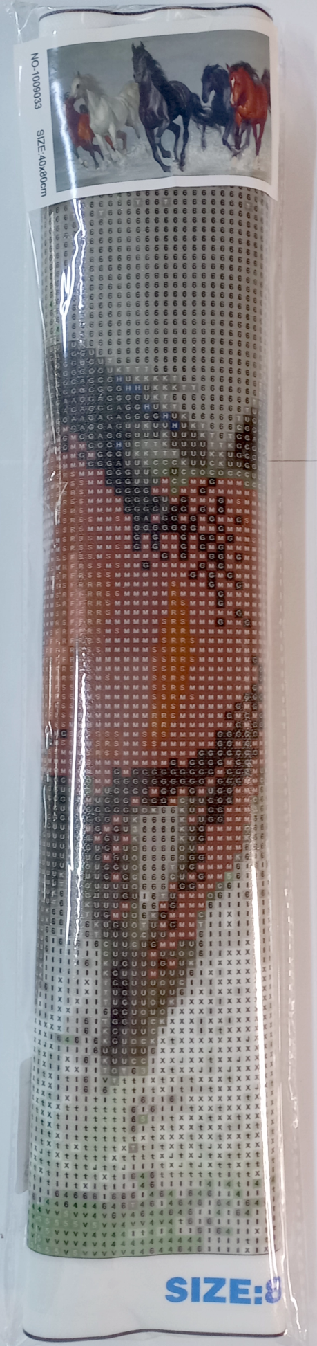 Horní strana plátna je potažena lepidlem a překrytá průhlednou folií. Folii sundávejte postupně po částech tak, jak budete aplikovat kamínky. Při sejmutí celé folie najednou se může lepicí vrstva znečistit a kamínky by nemusely tak dobře držet. Plátno obsahuje znaky, které jsou uvedeny v přiložené legendě a odkazují na příslušný sáček s kamínky označený číslem. Kamínky z daného sáčku vysypejte do misky. Do hrotu pera naberte vosk, díky kterému se kamínky snadno přichytí na pero. Kamínky perem nanášejte na obrázek. Po nalepení dané barvy kamínky nasypejte zpět do sáčku a pokračujte s další barvou.