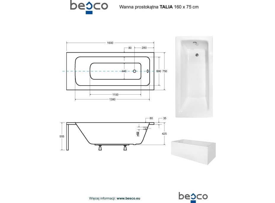 Elegantní obdélníková vana TALIA moderního vzhledu ze sanitárního akrylátu je koncipována jako single vana. Vzhled umocňuje zaoblený styl vnitřního prostoru s praktickým výlisem pro umístění podhlavníku. V případě potřeby umožňují instalaci vanové zástěny. Vana je díky svým rozměrům vhodná i pro menší koupelny.