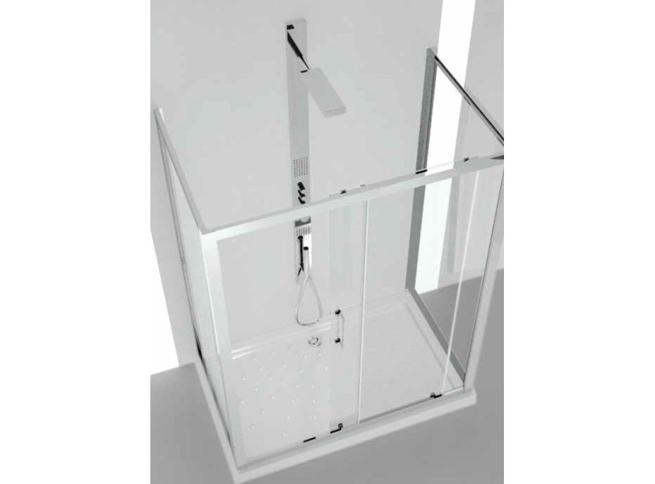 Obdélníkový kout MAYA KOMBI řeší atypické vstupy v prostorných koupelnách. Vytváří velmi luxusní dojem, který je podpořen výrazným chromovým madlem.