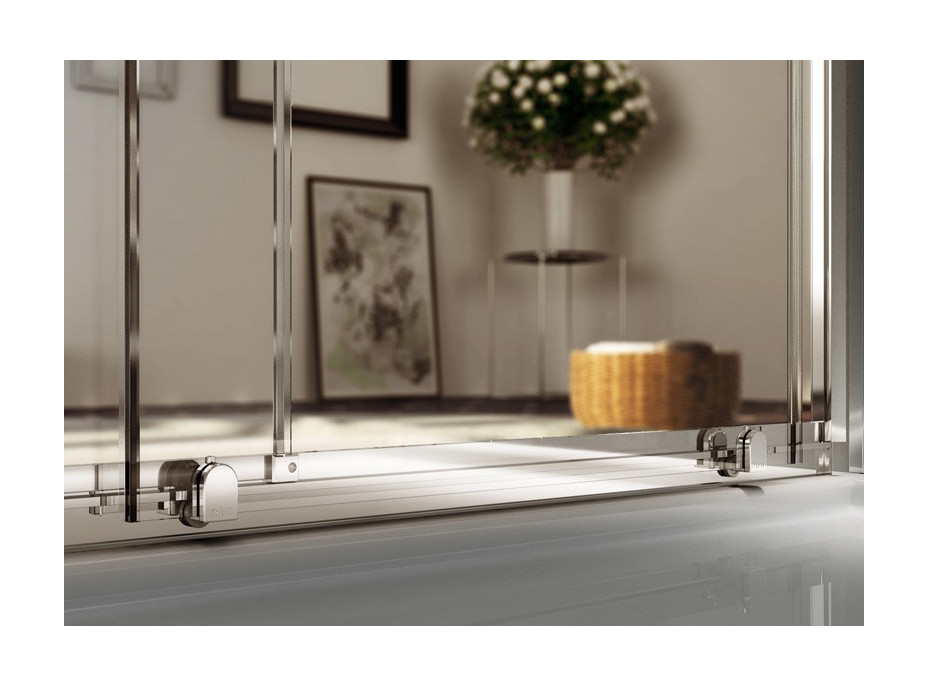 Obdélníkový kout MAYA KOMBI řeší atypické vstupy v prostorných koupelnách. Vytváří velmi luxusní dojem, který je podpořen výrazným chromovým madlem.