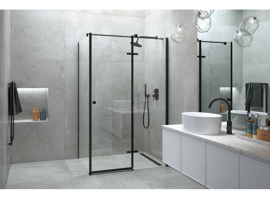 Obdélníkový celoskleněný sprchový kout PIXA BLACK vyniká vysoce kvalitním zpracováním a spolehlivou funkčností všech součástí a materiálů. Kout se skládá z pevných skel a zalamovacích dveří, které se otevírají do prostoru. Spodní hrana dveřní skla je opatřena okapničkou, díky níž voda ze skla při otevření nezteče do prostoru koupelny, ale do vnitřního prostoru koutu. Kout je možné objednat ve třech rozměrech 100 × 80 × 195 cm , 100 × 90 × 195 cm, 120 × 80 × 195 cm nebo 120 × 90 × 195 cm.