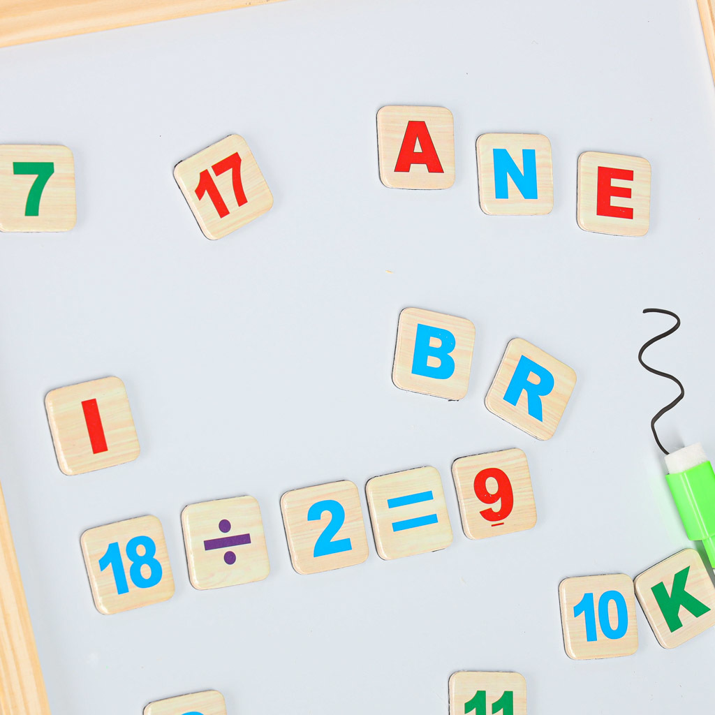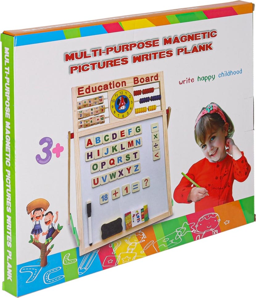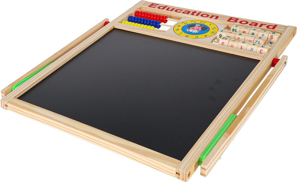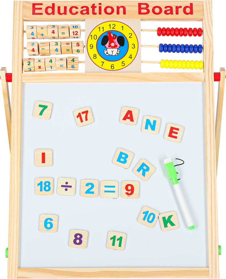 Tato multifunkční magnetická tabule je vynikající vzdělávací hračkou. Stabilní rám tabule je vyroben výhradně ze dřeva. Tabule je ideální pro psaní a kreslení křídou. Bílá strana je ideální pro psaní fixy. Lze na ni také připevnit magnety. Bude perfektní jako učební pomůcka v předškolním věku nebo ve škole. Tabule je vybavena počítadlem a hodinami. Prostřednictvím hry se děti naučí čísla a písmena a rozvíjejí počítací dovednosti. Kromě toho jim tato sada pomůže rychle a snadno si představit pravidla určování času a základy matematiky. Skvělý dárek pro každé dítě, stimulující kreativitu a logické myšlení.