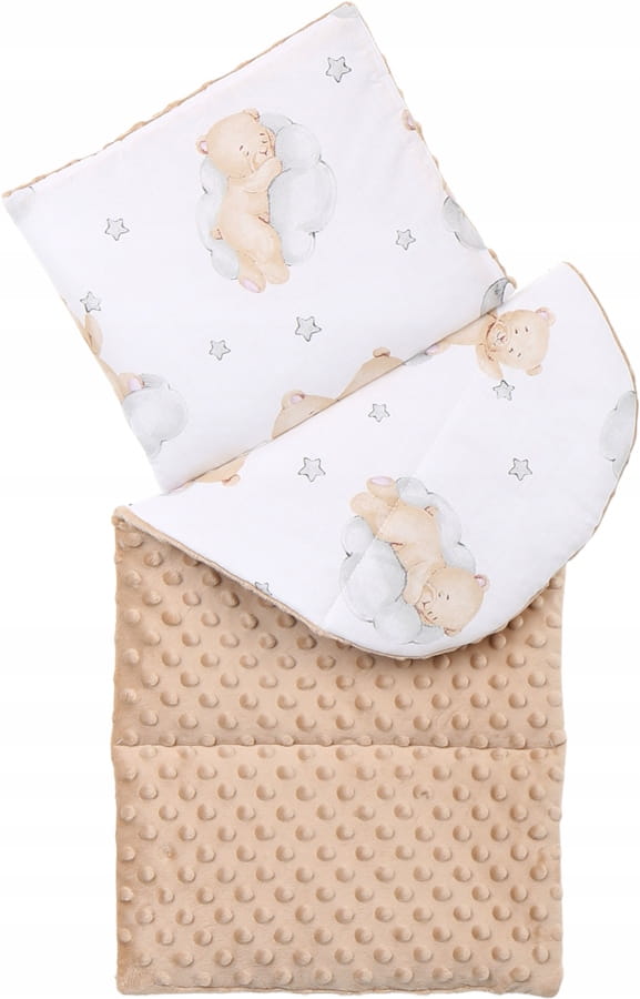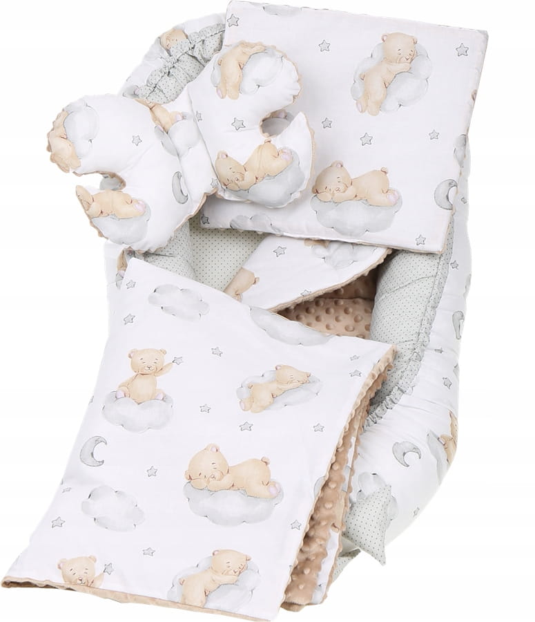 Oboustranné hnízdečko (kokon) pro miminko - BABYMAM PREMIUM set 7v1 - Medvídek v oblacích s béžovou minky