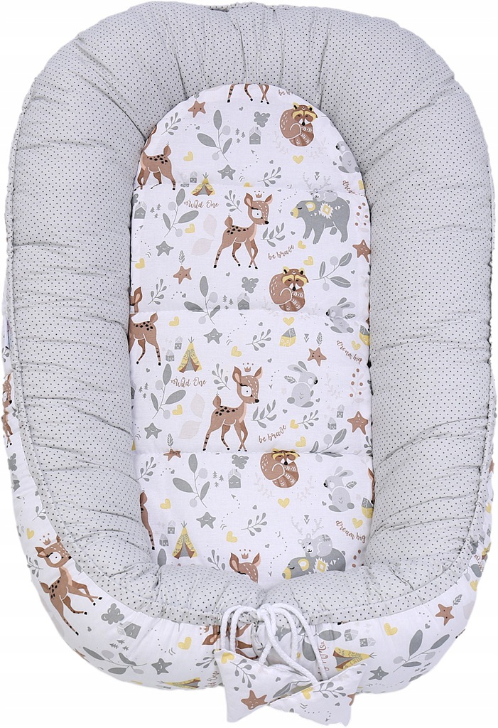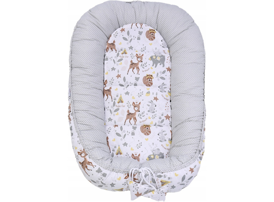Oboustranné hnízdečko (kokon) pro miminko - BABYMAM PREMIUM set 7v1 - Srneček a přátelé s šedou minky