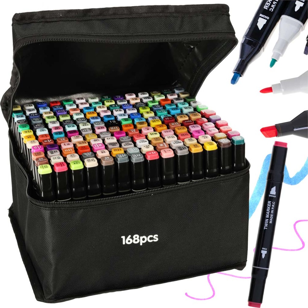 Vneste do svého života trochu barev! Tyto oboustranné fixy s intenzivními barvami jistě podnítí vaši kreativitu a povzbudí vás k vytváření nových krásných uměleckých děl. Díky 168 lihovým fixům budou skvělou volbou, ať už jste architekt, grafik, zkušený ilustrátor nebo začínající umělec. Fixy jsou skvělé pro každého - můžete s nimi kreslit, psát, ilustrovat, skicovat, stínovat, navrhovat, vybarvovat atd.