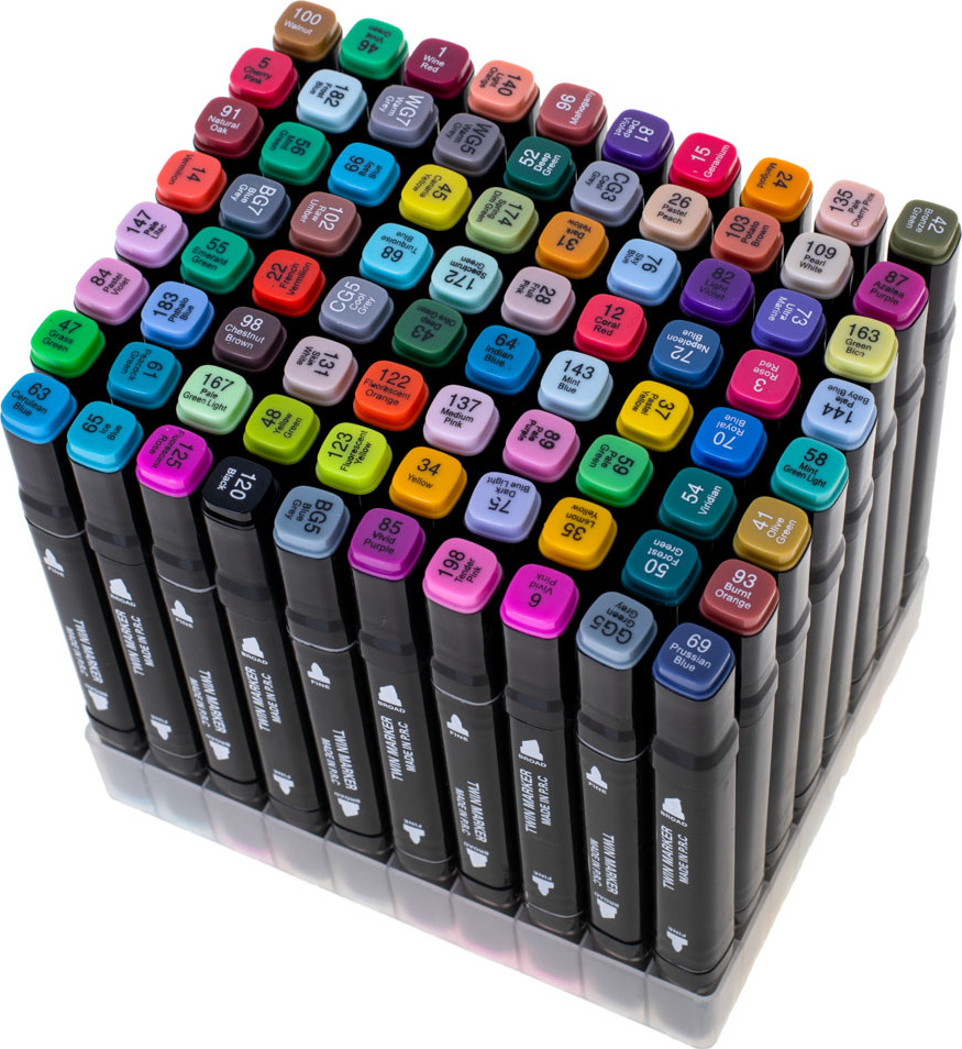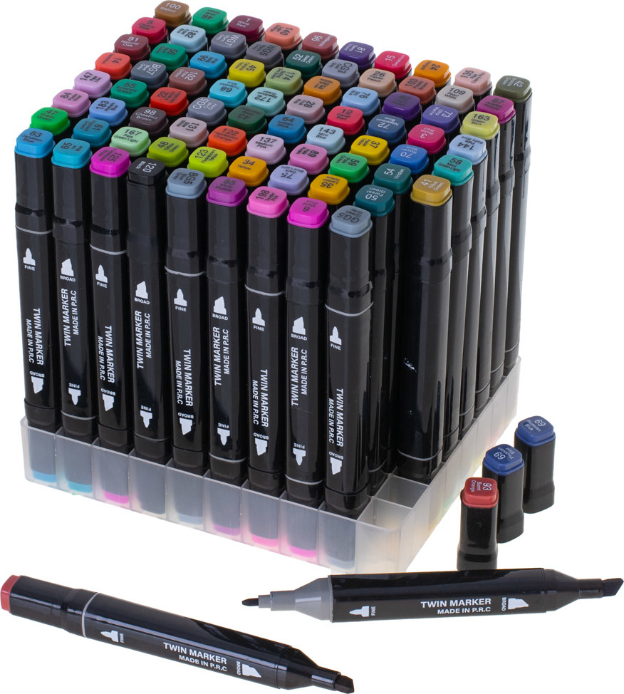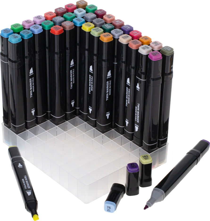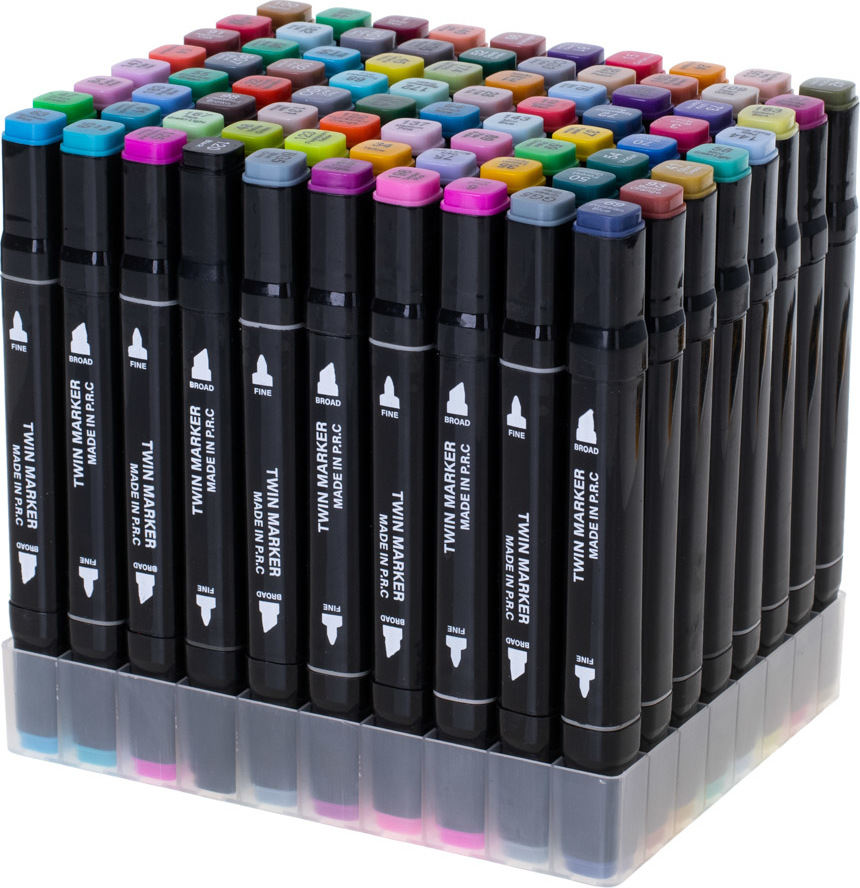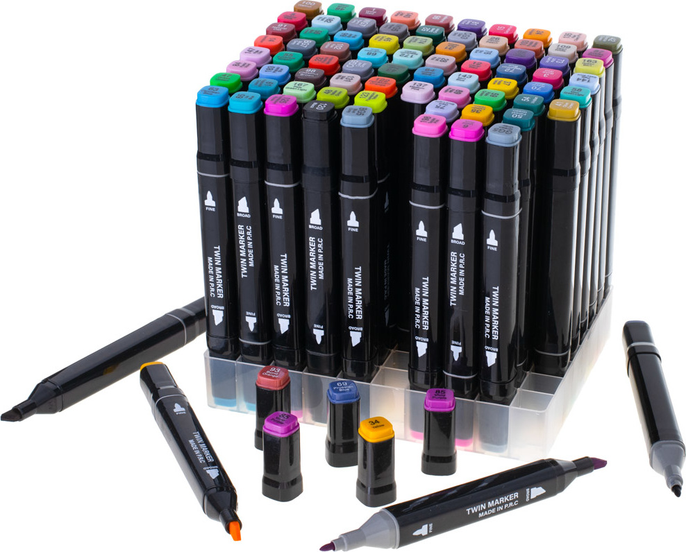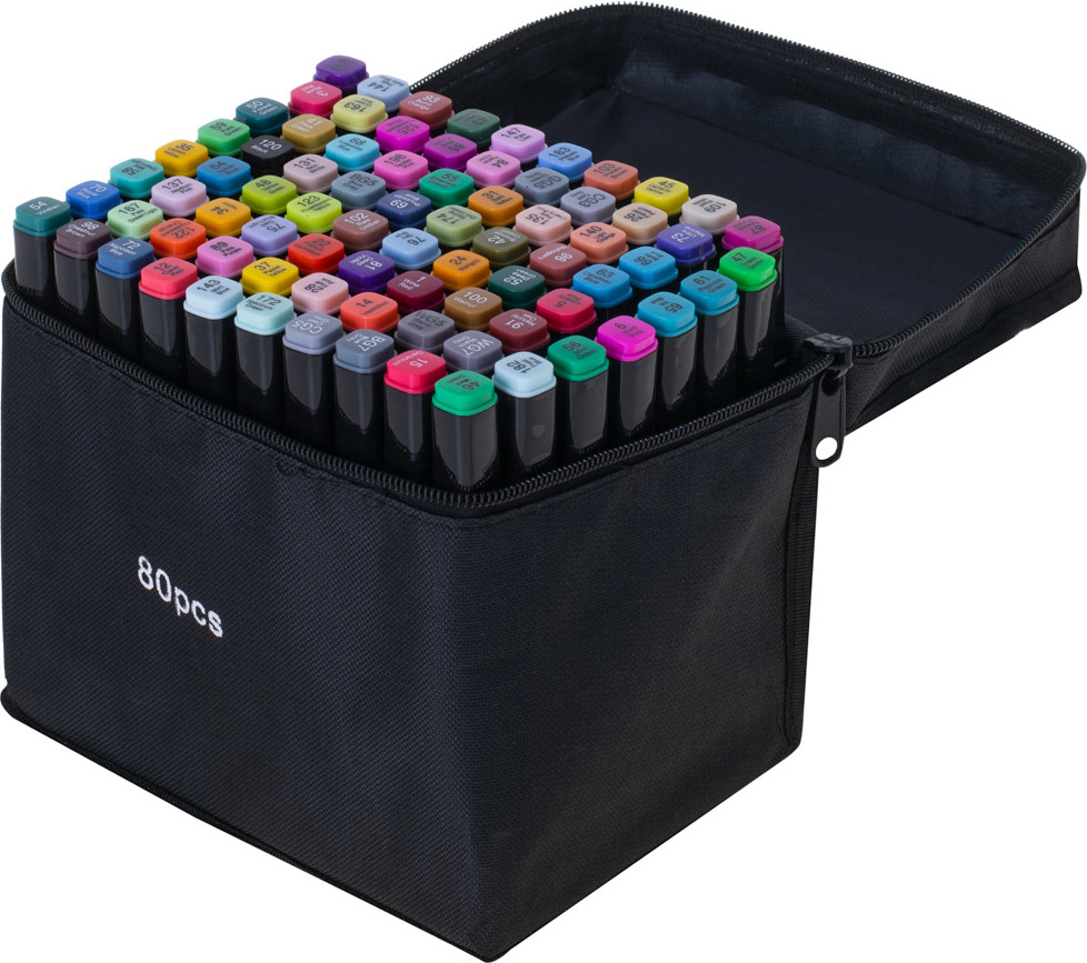 Oboustranné lihové fixy v pouzdře 80 ks + stojan