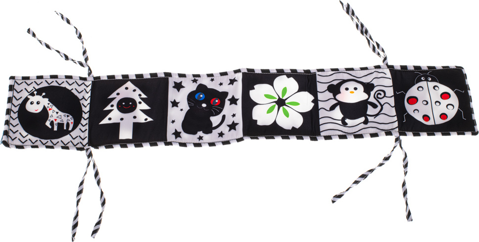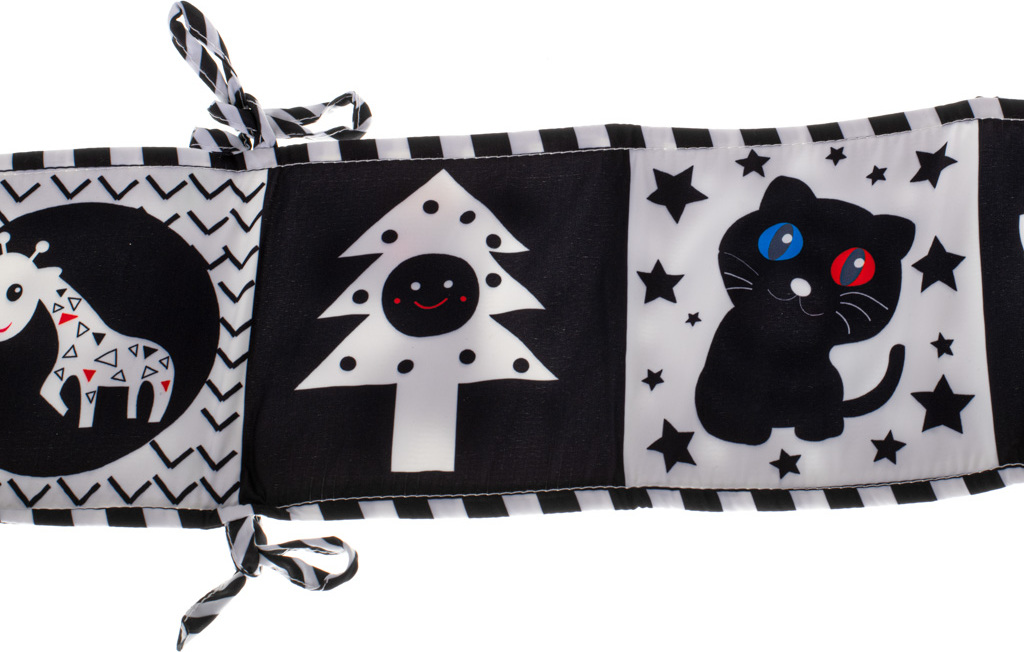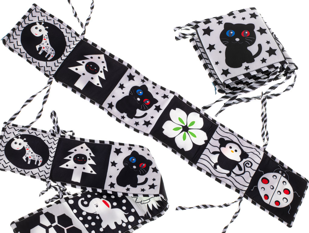 Kontrastní vzory upoutají pozornost batolat a podpoří jejich hru. Funkční a elegantní doplněk do dětského pokoje. Díky tomu, že je vyroben výhradně z látky, je lehký a nezabírá mnoho místa. Můžete si ji vzít na cestu nebo k lékaři - ukrátí vám čas při čekání v dlouhé frontě.