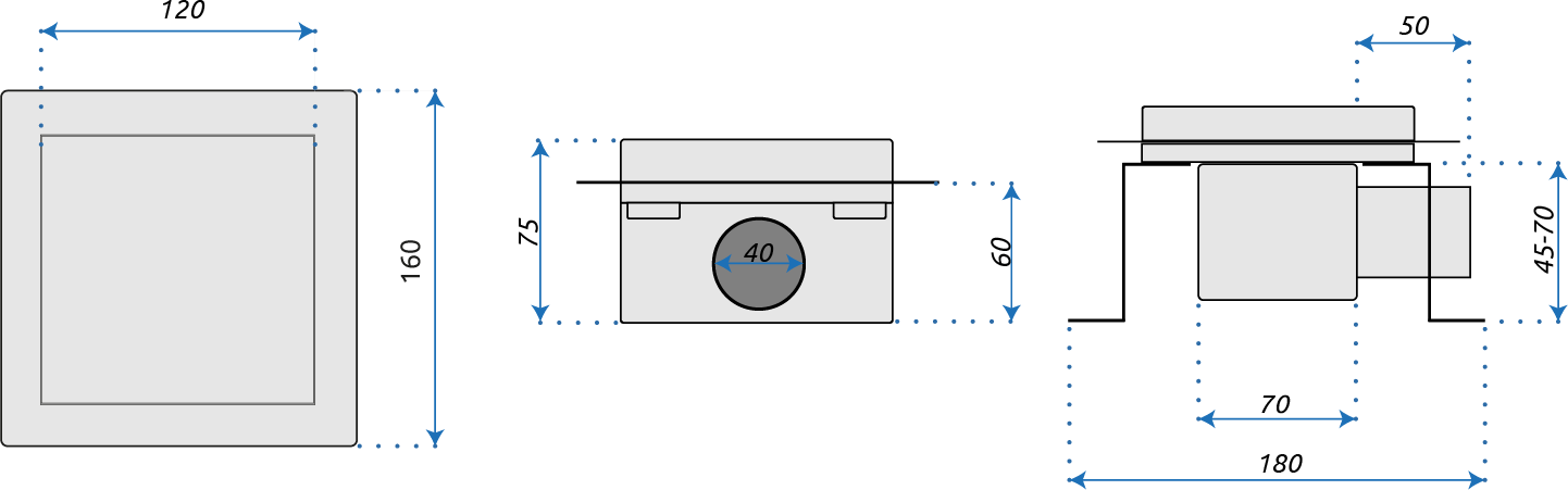 - Montážní hloubka: 64 mm s nastavitelnými nožičkami až na 84 mm