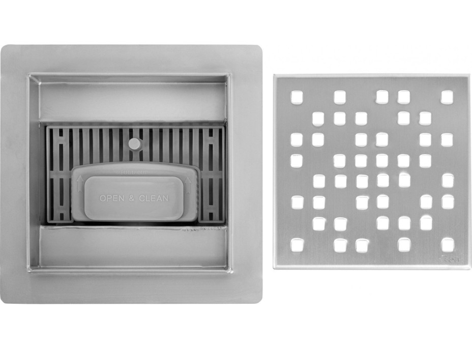 Odtokový sprchový žlab REA DOTS - hranatý - 12x12 cm - broušená ocel