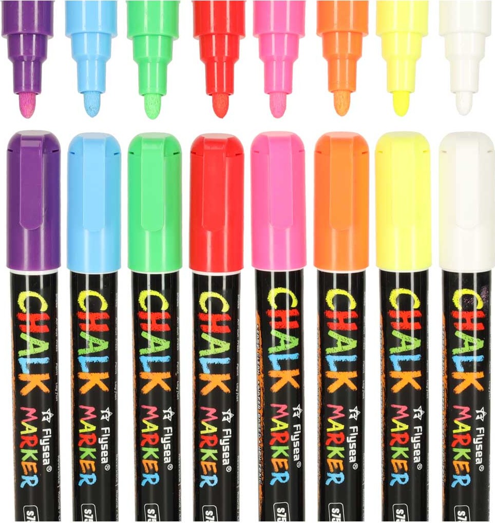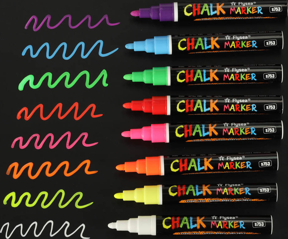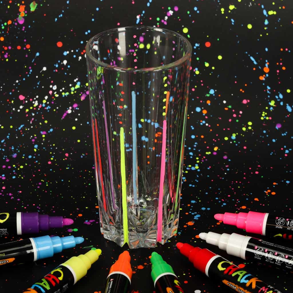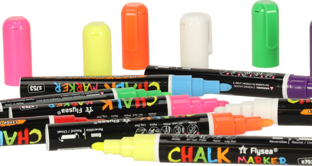 Nejsou to obyčejné fixy - jsou to křídové fixy na psaní, zdobení a reklamu, které jsou všestranné. Každý tekutý křídový popisovač píše hladce a ostře a navíc jej můžete poté snadno smýt - stačí vám k tomuvlhký hadřík. V sadě najdete také bílý křídový popisovač, který je ideální prokontrastní nápisy na tmavých površích. Chcete vytvořit nápisy na výlohy, vyzdobit stánek před provozovnou nebo třeba ozvláštnit hraní s dítětem? Tyto křídové popisovače na sklo a bílé tabule jsou vhodné pro vše od výuky hrou až po profesionální výzdobu. Skvěle se hodí také jako křídové popisovače pro kreslení, bary a restaurace - dobře se uplatní tam, kde je důležitá estetika a snadné použití. Tyto křídové popisovače pro psaní na sklo a bílé tabule jsou naprostou nezbytností v dětském pokoji, zázemí kavárny nebo školní třídě. Tvořte, hrajte si, učte se a smývejte, kdykoli se vám zachce. S pomocí křídového popisovače se jakýkoli povrch promění v barevný prostor.