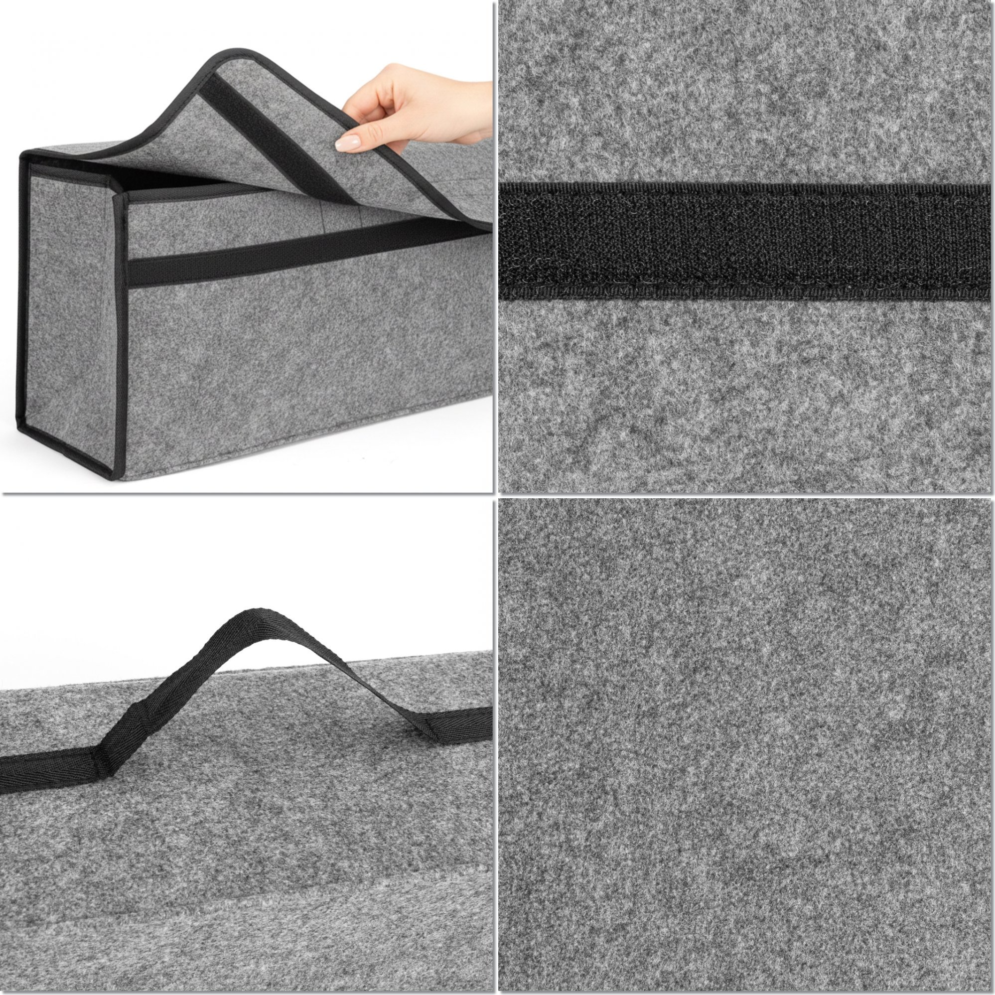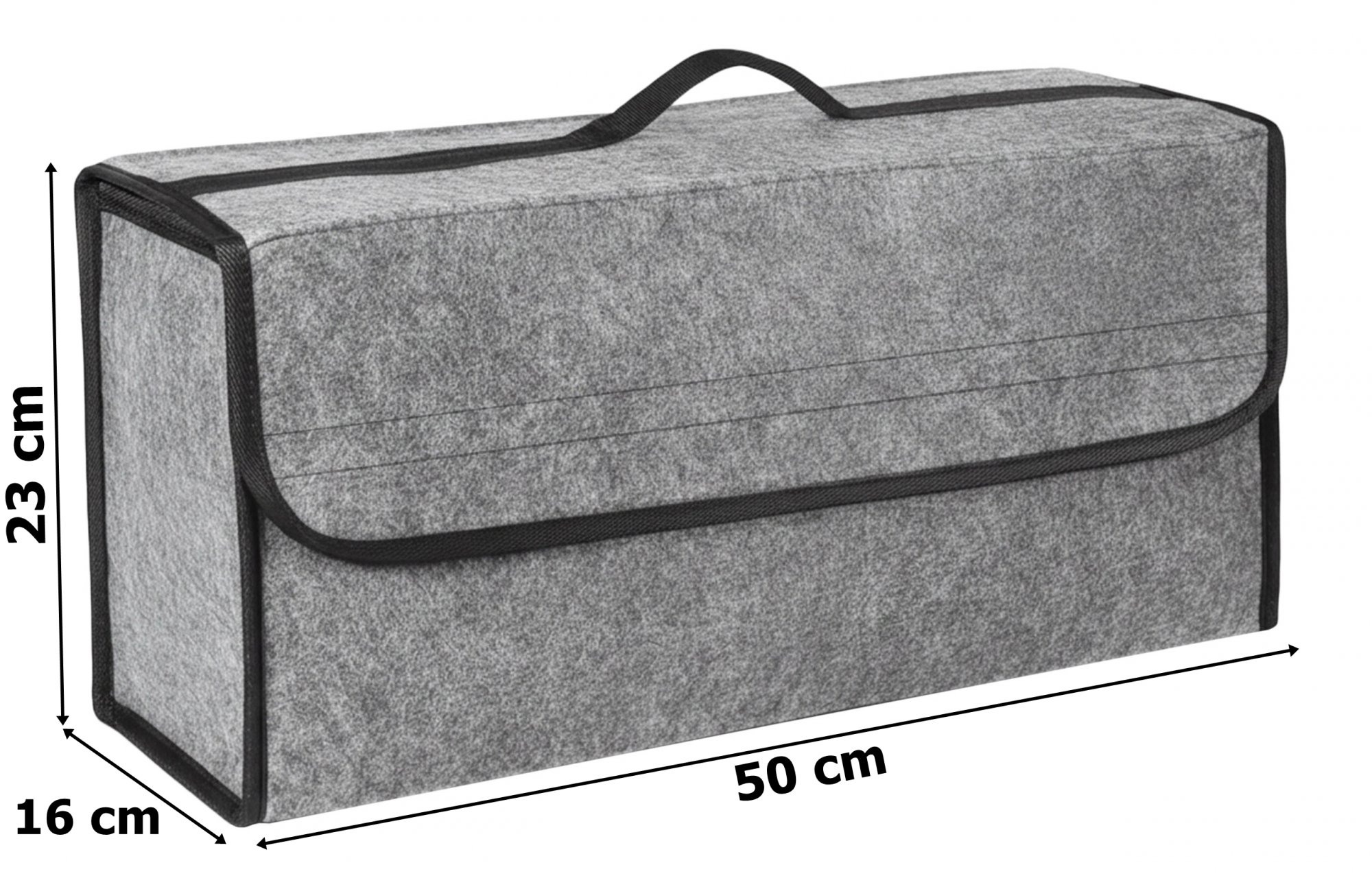 Snadno uspořádejte úložný prostor ve vašem autě. Organizér Rexer vám pomůže udržet si pořádek a poskytne vám další prostor pro všechny drobnosti, které chcete mít po ruce. Je vyroben z odolné plsti, snadno se skládá a má praktické držadlo – ideální pro každodenní použití i delší cesty.