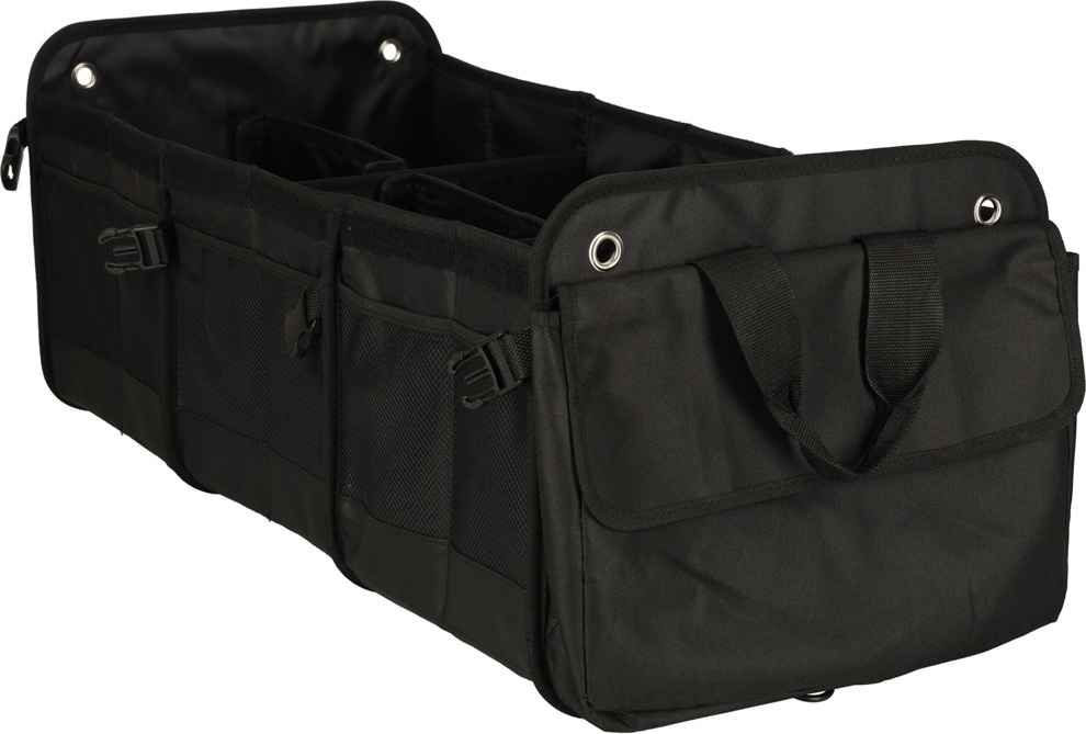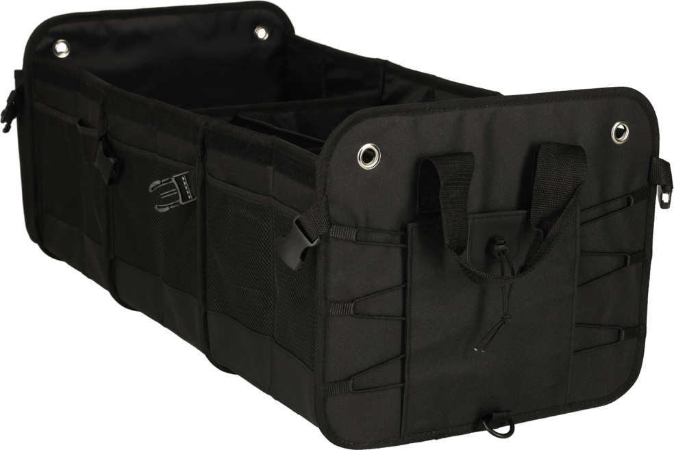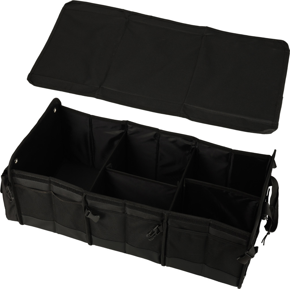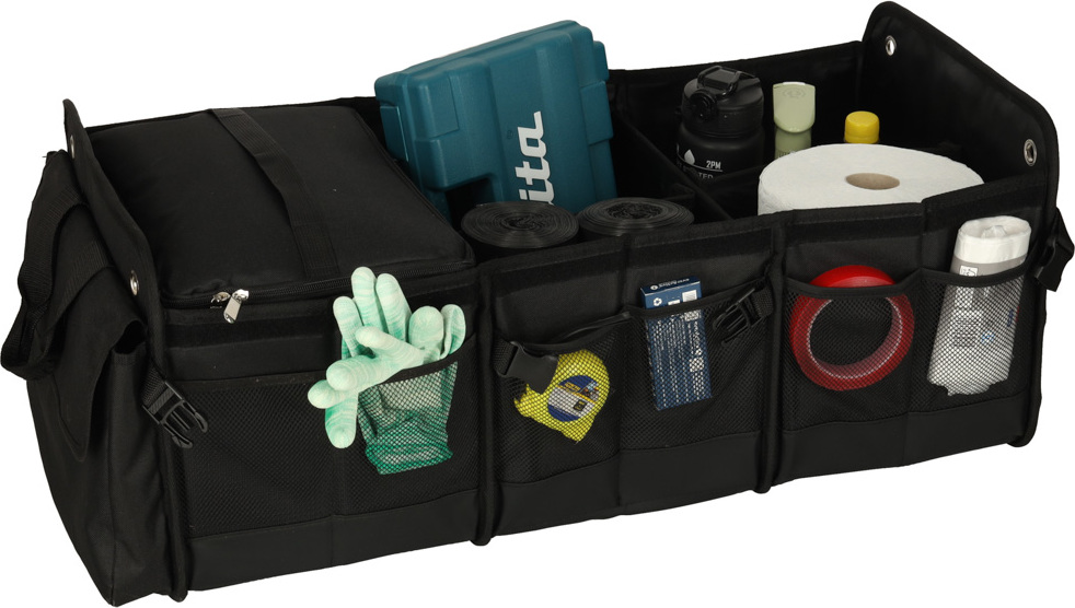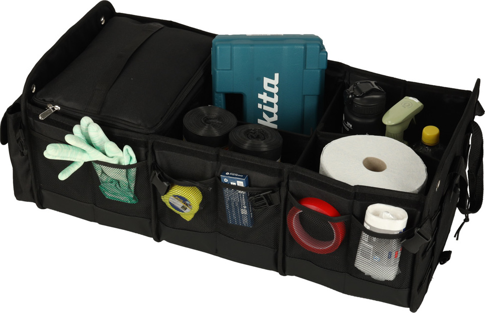 Přenosná taška do auta s nastavitelnými přihrádkami je nezbytná pro krátké i dlouhé cesty autem. Nabízí dostatek prostoru a kapes – navíc organizér obsahuje chladicí tašku, která vám pomůže přepravovat předměty, které je třeba uchovávat v chladničce. Voděodolný materiál splní očekávání těch, kteří požadují odolnost a praktičnost. Tato skládací taška se zapínáním přezkami se hodí, když potřebujete udržet pořádek v autě. Určitě najde místo v kufrech s malou kapacitou. Odnímatelné přepážky uvnitř organizéru vám pomohou přizpůsobit jeho kapacitu velikosti kufru. Obrovskou výhodou organizéru je odnímatelná chladicí taška, která efektivně udržuje teplotu chlazených předmětů. Víko na suchý zip a karabiny chrání předměty před vypadnutím během jízdy. Pohodlné rukojeti umožňují pohodlnou přepravu předmětů kamkoli. Organizér je vyroben z tkaniny Oxford, která je odolná proti roztržení a mechanickému poškození. Materiál je také voděodolný, takže tašku můžete vybalit i v dešti, aniž byste se museli obávat, že obsah navlhne. Taška v kufru chrání čalounění před nečistotami – tvrzené dno zabraňuje prosakování.