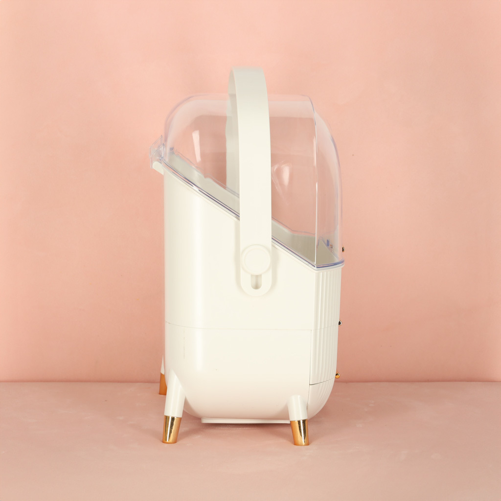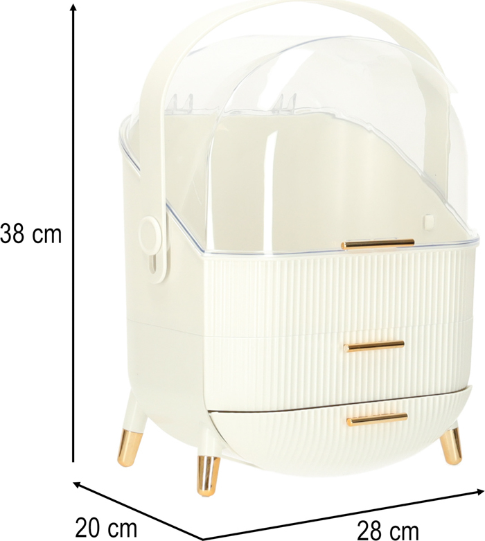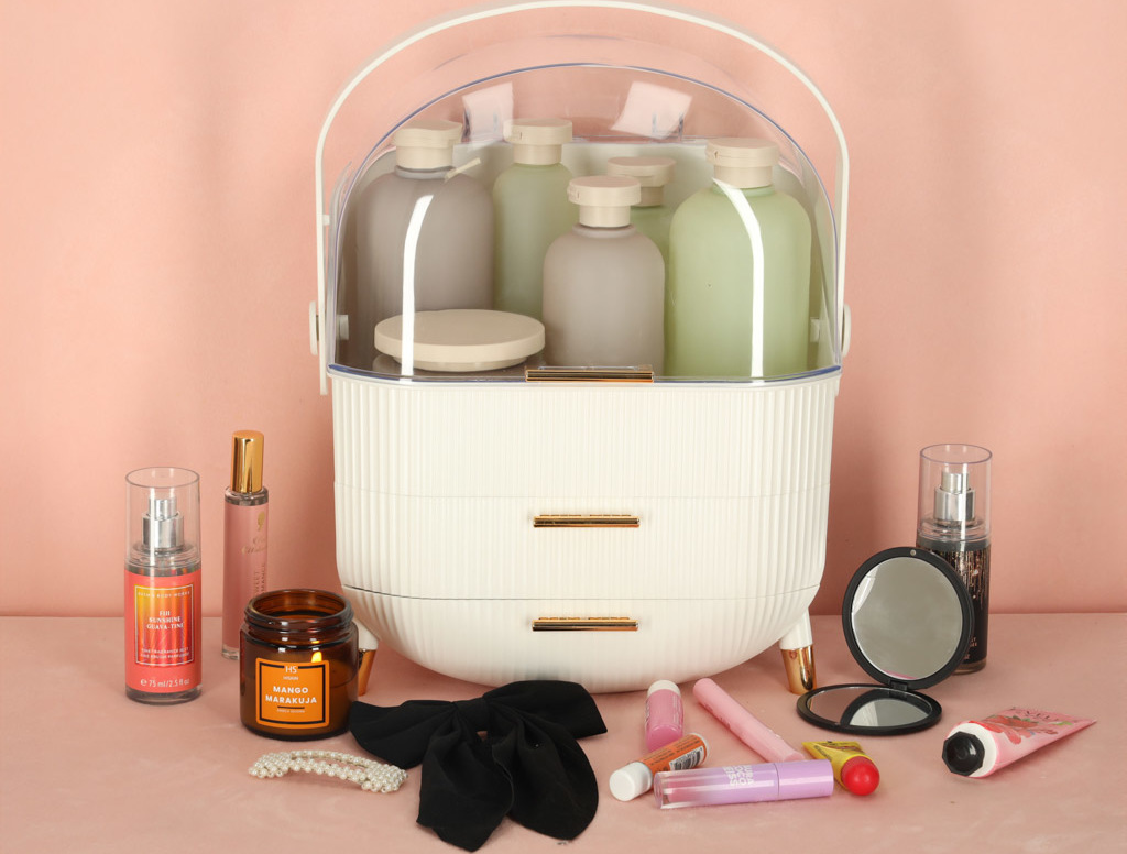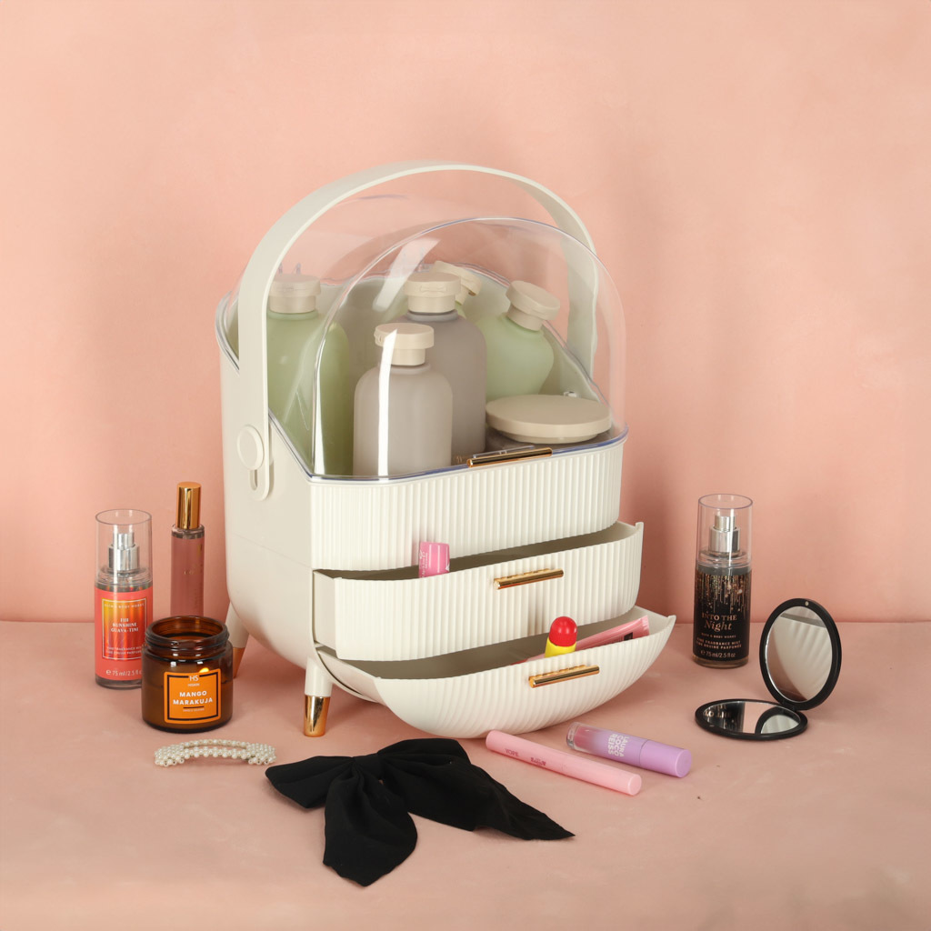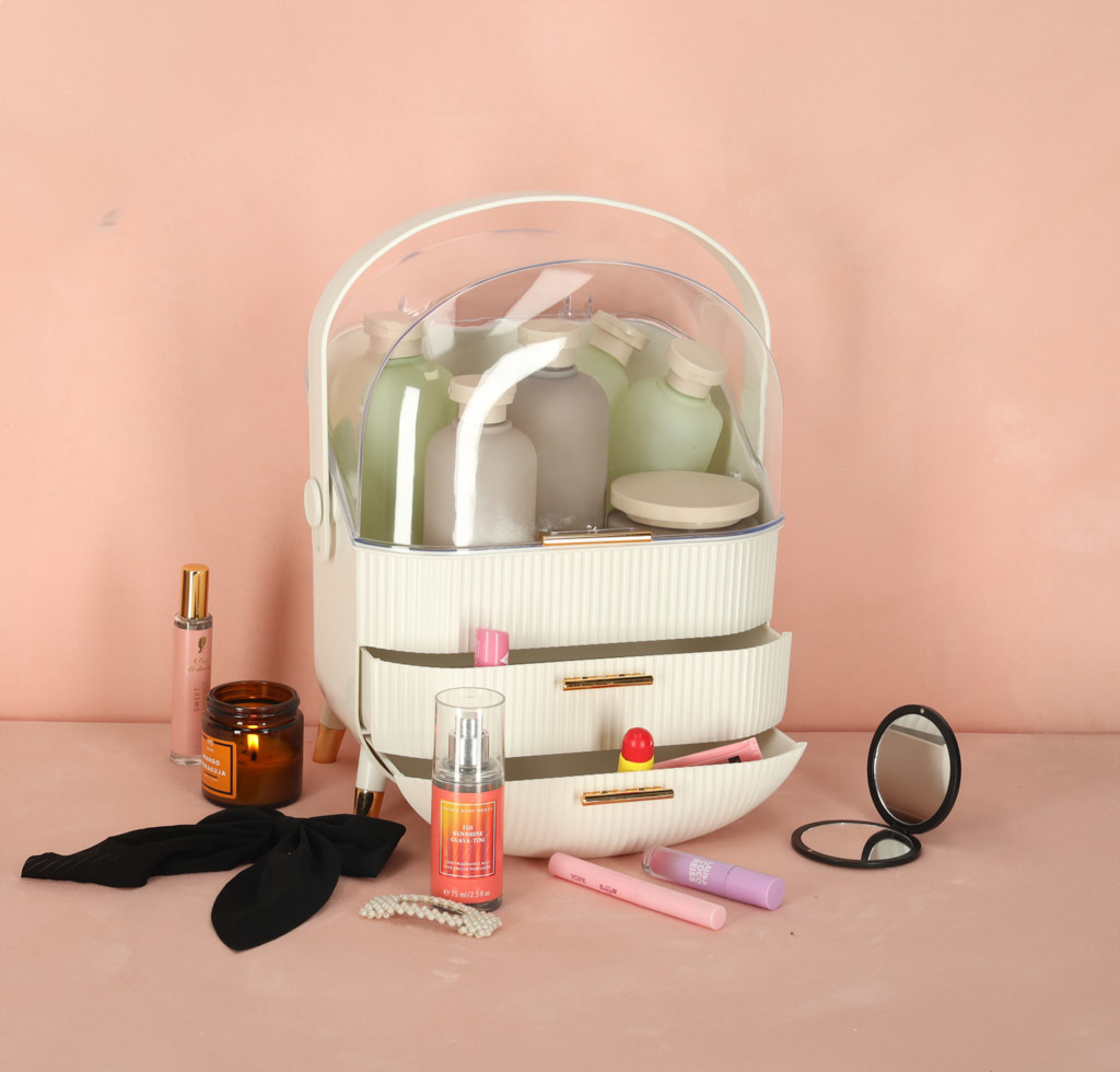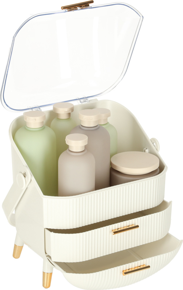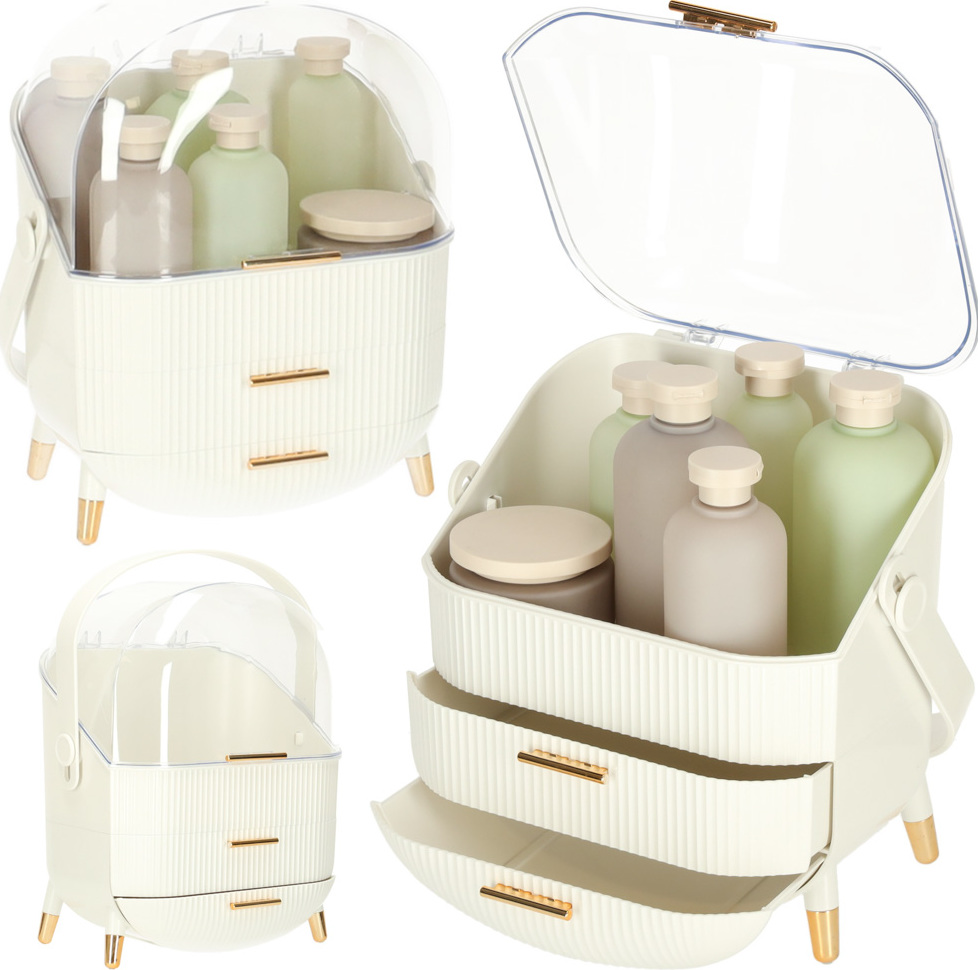 Seznamte se s jedinečným organizérem na kosmetiku se zásuvkami, který změní vaši každodenní rutinu. Je to více než jen praktický doplněk - je to stylová skříňka na kosmetiku, která dokonale ladí s estetikou moderních interiérů. Díky výsuvným zásuvkám a praktickému madlu funguje také jako kufříkový organizér, který můžete snadno přenášet, kamkoli potřebujete.