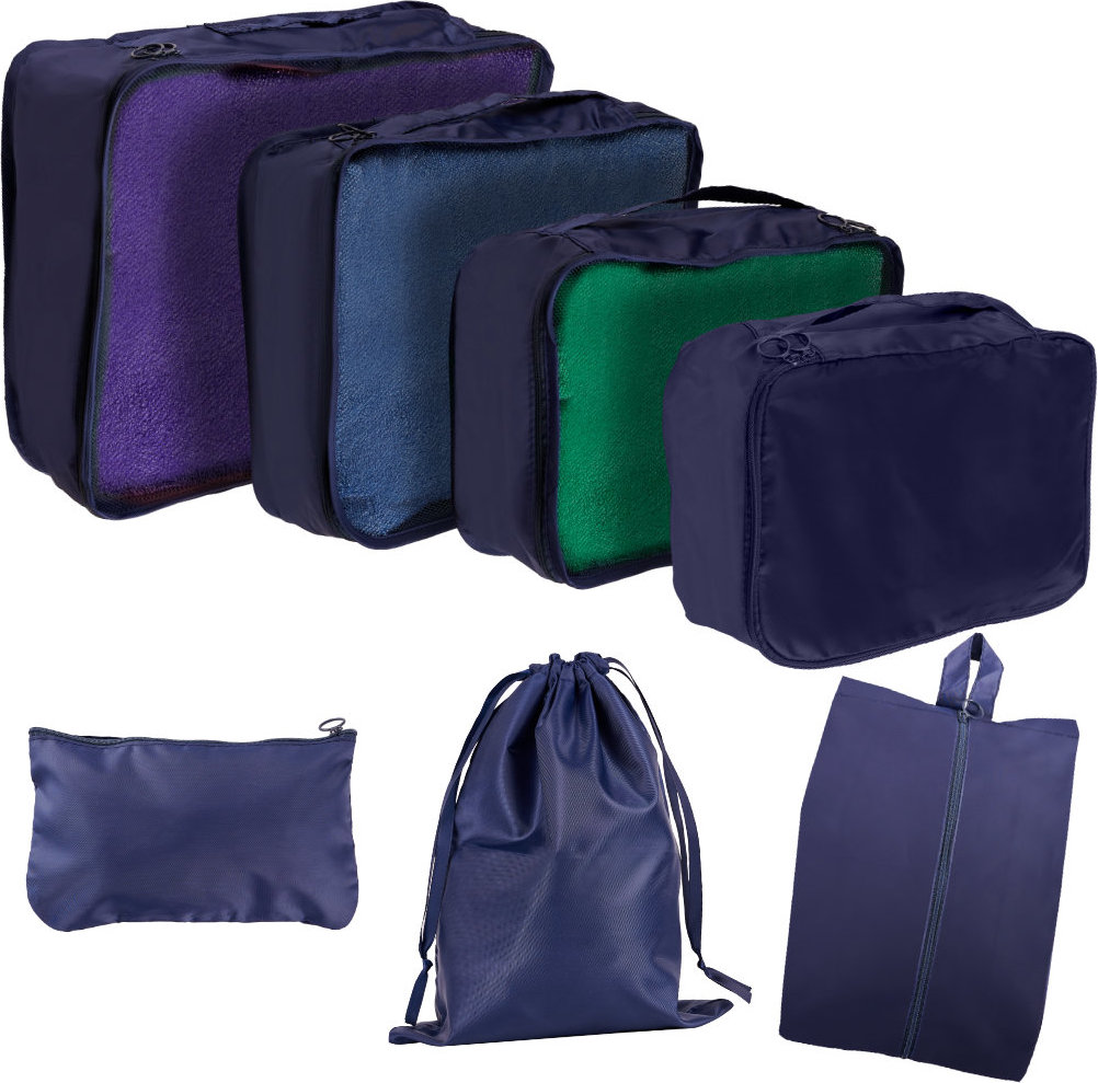Tato sedmidílná sada organizérů do kufru je nezbytností pro každého cestovatele. Čtyři prostorné „kostky“, kapsa, organizér na boty a cestovní taška – vše, co potřebujete k udržení pořádku ve vašich zavazadlech. Zipy, kompresní popruhy a různé velikosti organizérů usnadňují balení více než kdy dříve. Všechny položky jsou tmavě modré. Je to perfektní řešení pro ty, kteří si cení organizovanosti a pohodlí, a to jak na cestách, tak v každodenním životě.