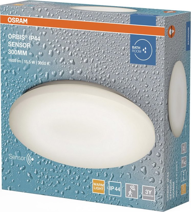 OSRAM ORBIS koupelnové stropní svítidlo, ø 300mm, senzor, OSRAM, 1600lm, 15, 5W, IP44 AC36060022M
