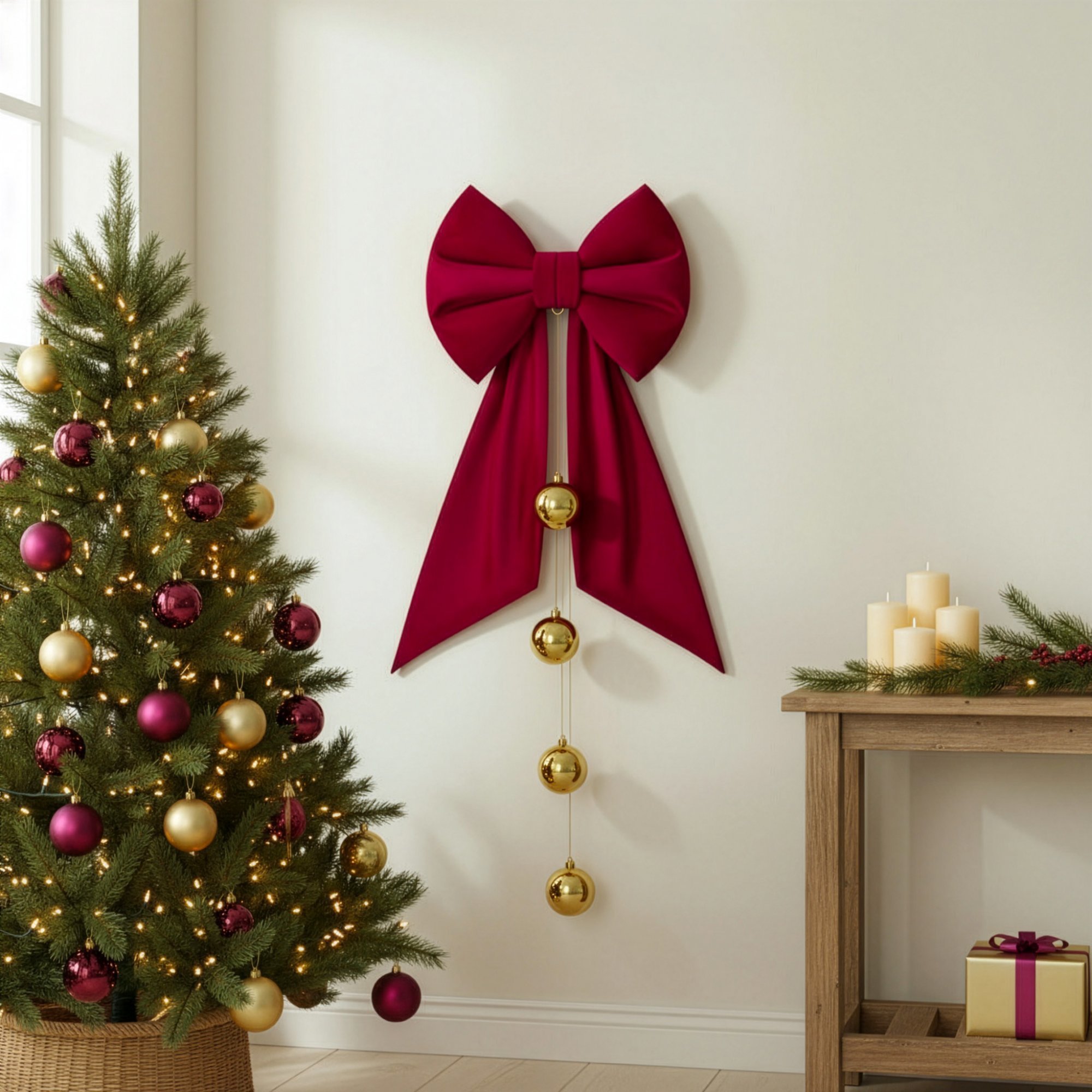 Luxusní, ručně šitá ozdobná mašle z měkkého sametu je ideální jako vánoční dekorace na dveře, okno nebo stromeček. Mašle je vyrobena s maximální péčí. Mašle bude luxusní dekorací s nadčasovým charakterem. Sametová mašle Glam je perfektní volbou pro milovníky noblesy a harmonie. Ruční výrobek, sametová hebkost a dokonalý tvar dělají z této dekorace poutavý prvek v jakémkoli interiéru. Vypadá skvěle jak na vánočním stromečku, tak na vchodových dveřích a vytváří útulnou, slavnostní atmosféru. Ideální k zavěšení na vchodové dveře, vánoční stromeček nebo nad krb. Symbolizuje radost, teplo a rodinné chvíle – díky tomu je volbou, která nikdy nevyjde z módy. Dodá vašemu interiéru nádech elegance a svátečního třpytu! Sametová mašle Glam je jedinečná dekorace, která zaujme svým vzhledem a kvalitním řemeslným zpracováním. Je ušita z měkkého, luxusního sametu s krásným, jemným leskem. Každý prvek byl ručně vyroben s pečlivou pozorností k detailu. Vnitřní výztuha zajišťuje, že si zachovává perfektní tvar, zatímco dvojitě prošité úponky zajišťují, že látka vypadá stejně elegantně z obou stran.