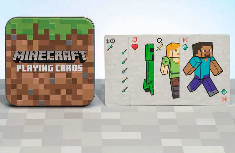Hrací karty s motivem Minecraft. Karty v klasickém designu Minecraft jsou uloženy v dekorativní plechové krabičce, takže jsou ideální pro fanoušky nebo hráče. Vhodné pro hraní kvarteta, rummy, blackjacku, pokeru, černého Petra nebo pasiánsu.