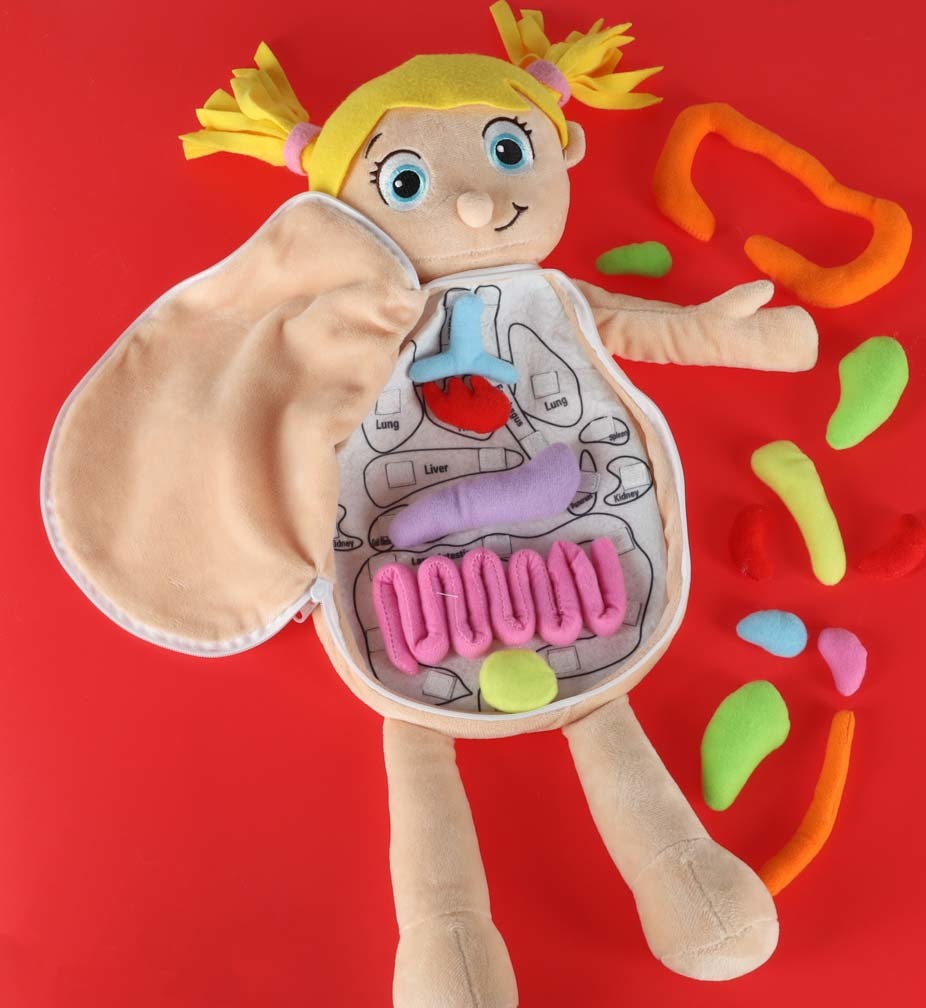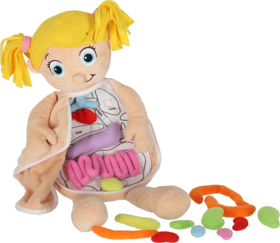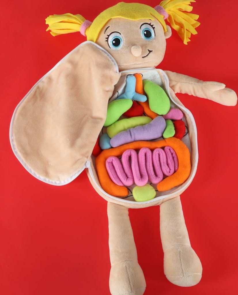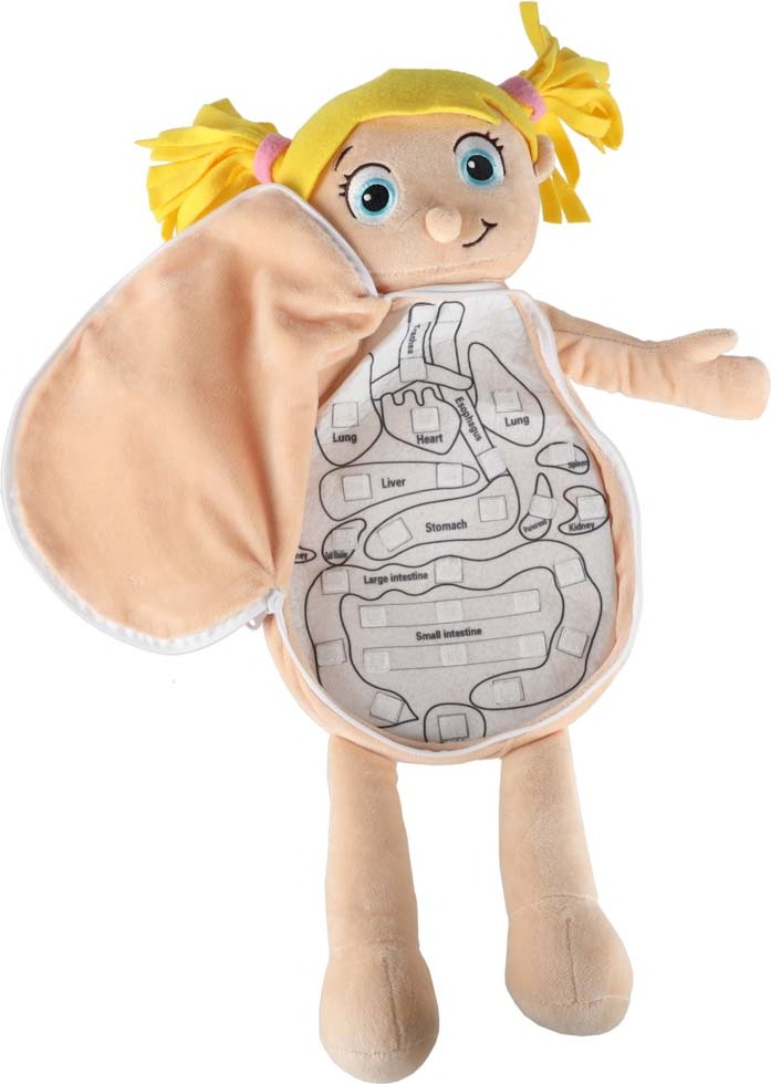 Vnitřek panenky (dívky) ukrývá kompletní sadu prvků reprodukujících orgány lidského těla. Obsahuje průdušnici, jícen, srdce, játra, žaludek, slinivku břišní, slezinu, žlučník, tenké a tlusté střevo, močový měchýř a také pár plic a dvě ledviny. Každý kus byl navržen tak, aby přístupnou formou představil strukturu a uspořádání lidských orgánů. (Chlapecká a dívčí verze panenky mají identické anatomické struktury).