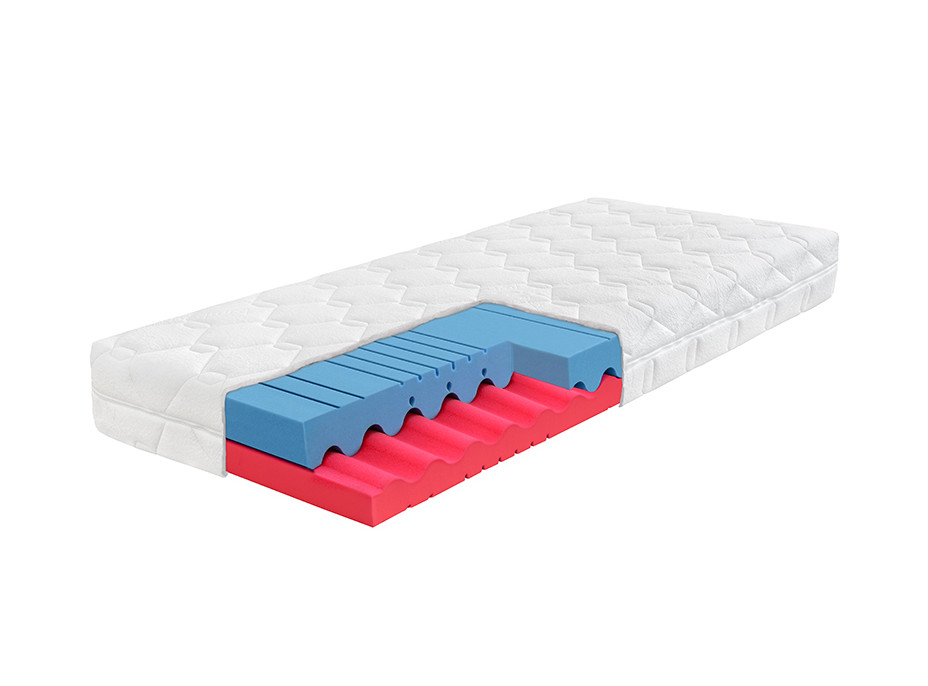 Matrace využívá kombinaci pevné hybridní PUR pěny, studené HR pěny s vysokou objemovou hmotností a unikátního průřezu pro maximální pohodlí.