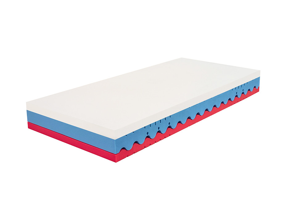 Složení matrace: T40 hybridní pěna (HY pěna) s hustotou 40 kg/m3, "studená" HR pěna s hustotou 50 kg/m3, viscoelastická (líná) paměťová pěna 45 kg/m3