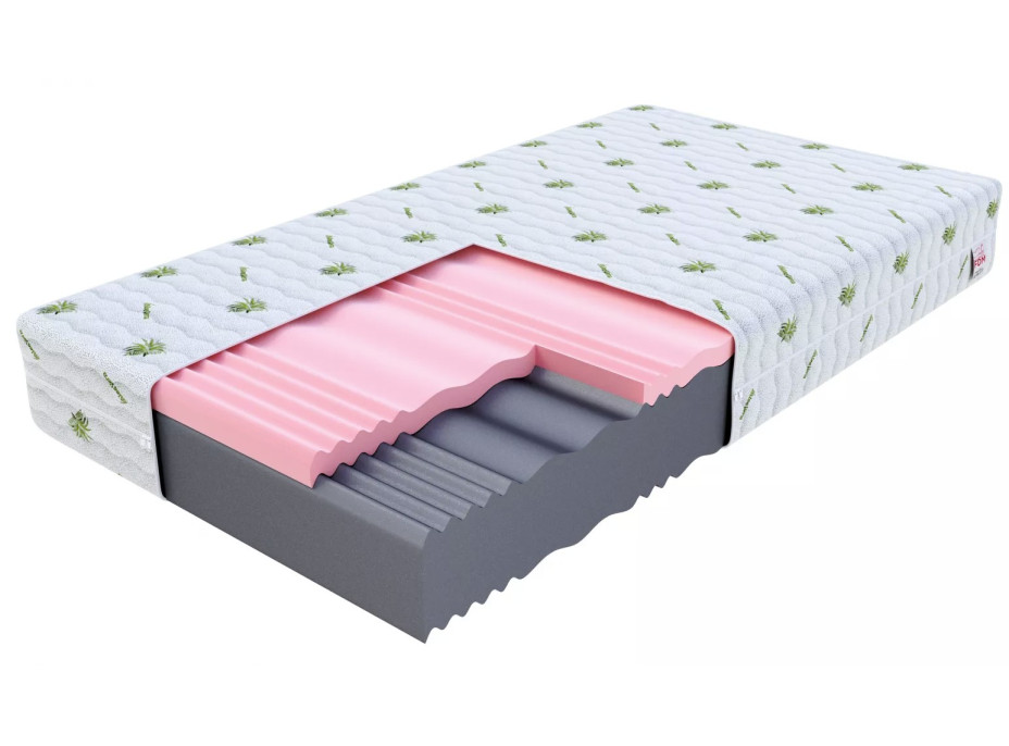 Složení matrace: studená HR pěna s hustotou 30 kg/m3, termoplastická paměťová pěna s hustotou 30 kg/m3