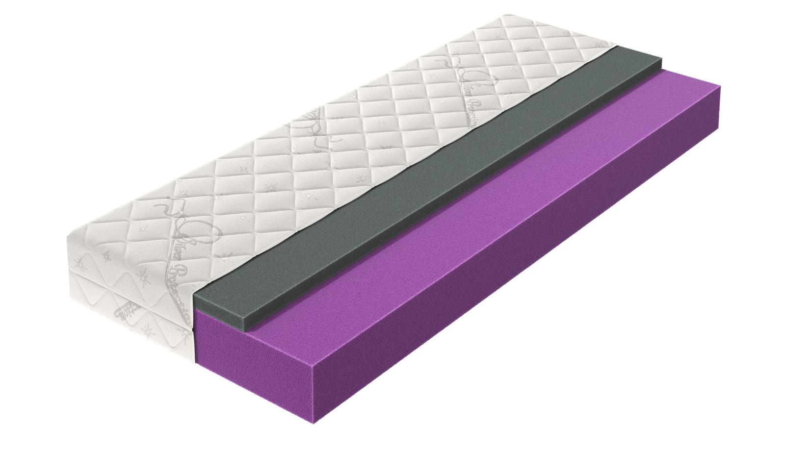Konstrukce jádra matrace: 4 cm termoplastická paměťová pěna, 16 cm HR pěna