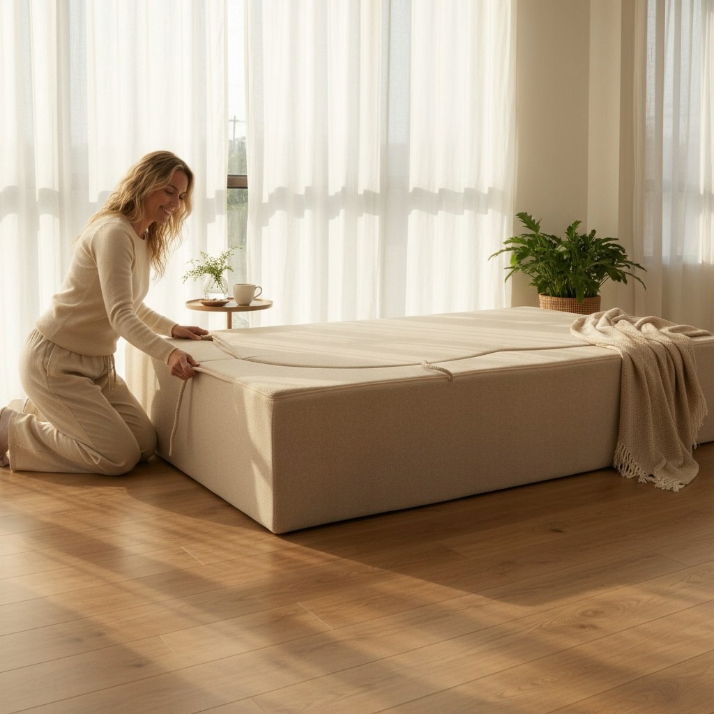 Vyrobena je z vysoce kvalitní pěny, která poskytuje stabilní oporu při sezení i při spánku. Potah z měkké, příjemné látky je odnímatelný a pratelný, takže se pohovka snadno udržuje v perfektním stavu.