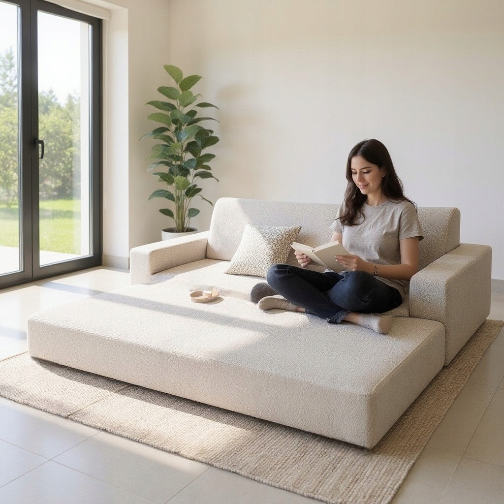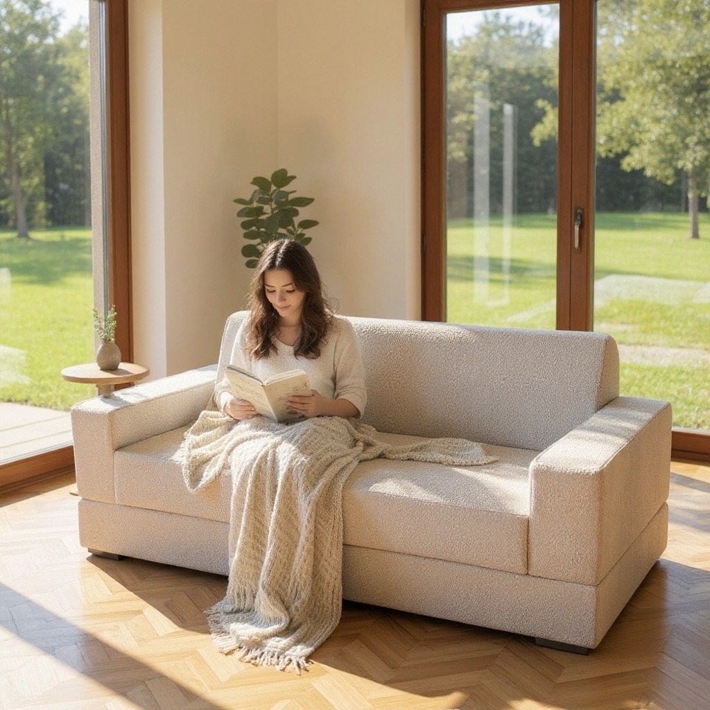 Vyrobena je z vysoce kvalitní pěny, která poskytuje stabilní oporu při sezení i při spánku. Potah z měkké, příjemné látky je odnímatelný a pratelný, takže se pohovka snadno udržuje v perfektním stavu.