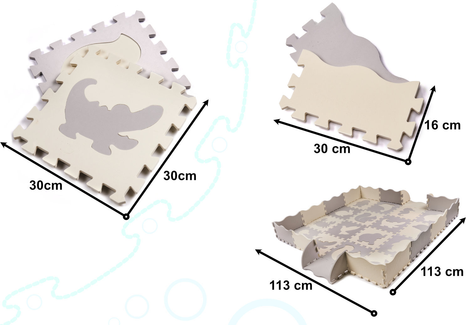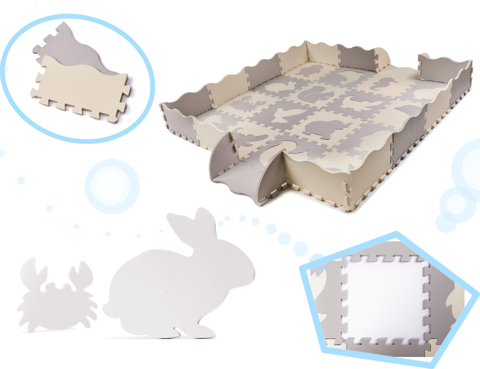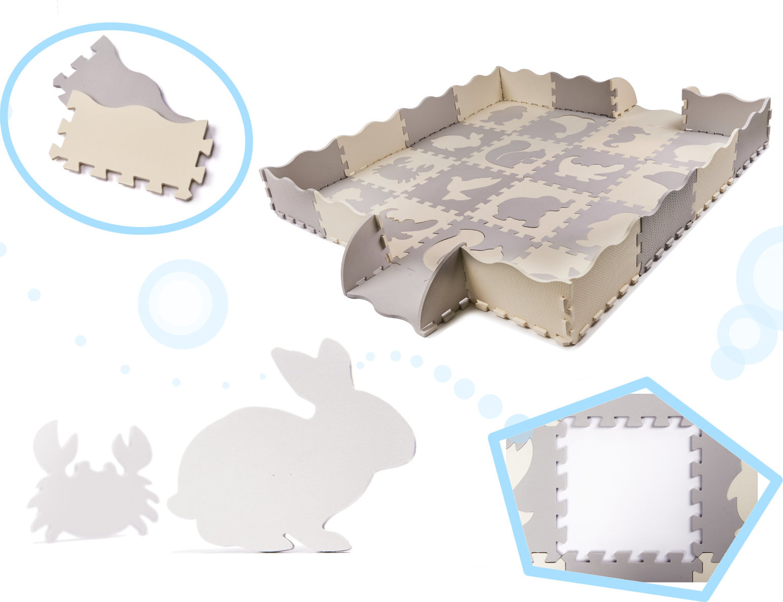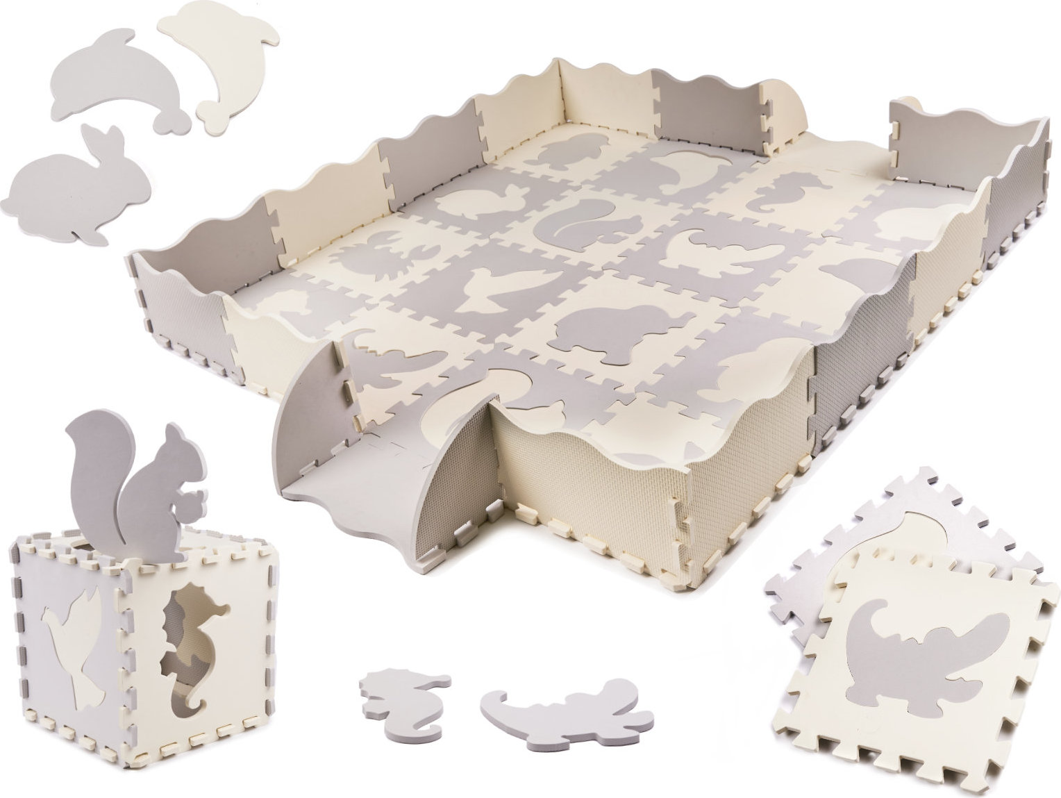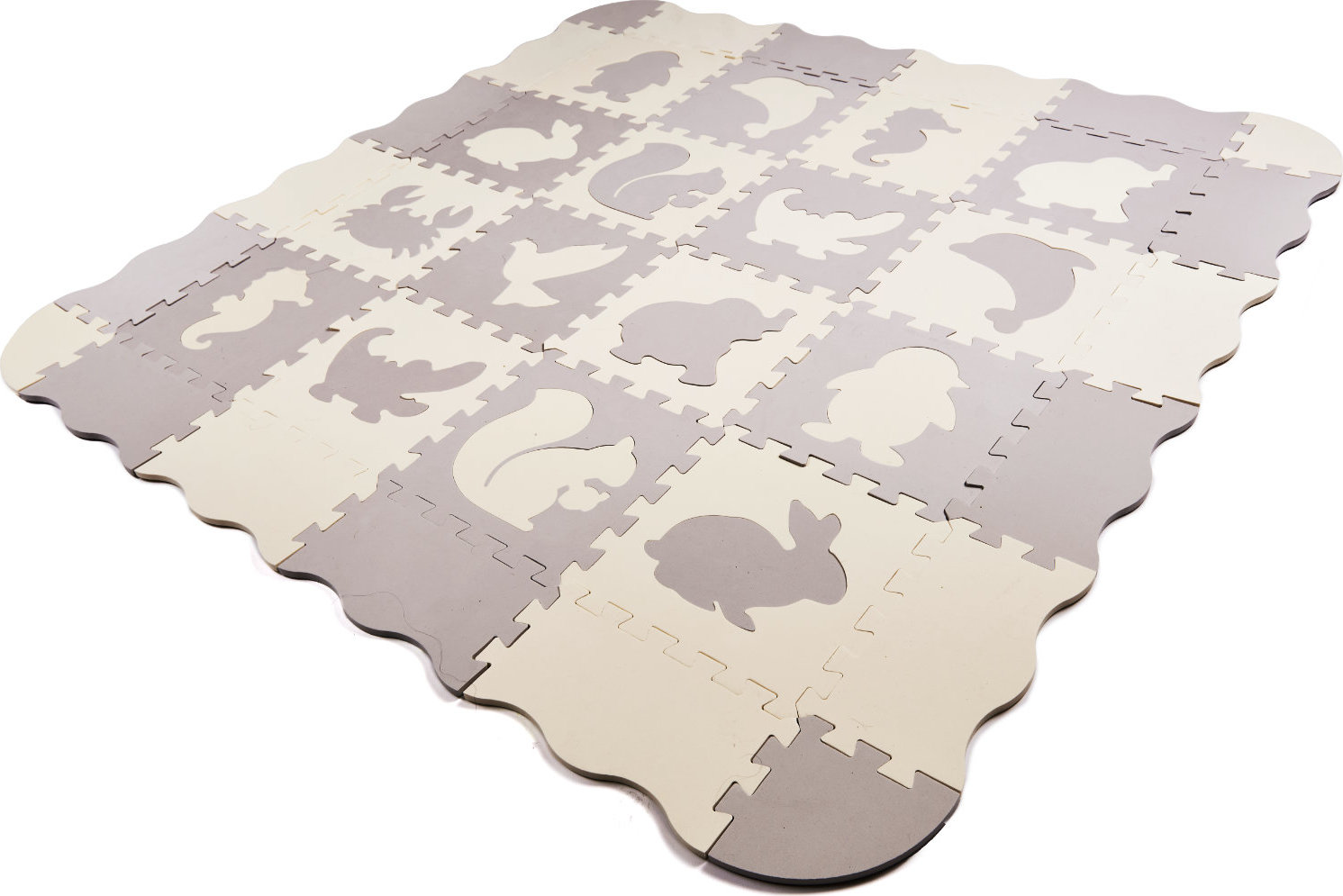 Pěnová puzzle podložka pro děti - 36 prvků - šedá/ecru