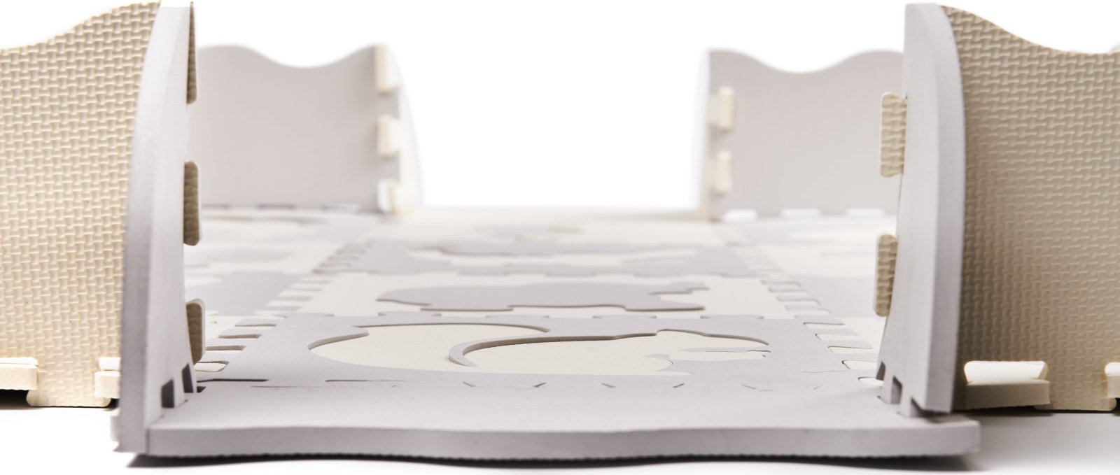 Jaká je největší výhoda skládaček? To, že rostou s vaším dítětem! Vytvořte si z nich jedinečnou podložku nebo ohrádku, která se stane oblíbeným hřištěm každého batolete. Během prvních krůčků dítěte tlumí měkká pěna všechny pády a zabraňuje otlakům na nohou dítěte. Ohrádka je naopak skvělým způsobem, jak vymezit dětský hrací prostor. Odnímatelné dílky jsou ideální pro výuku rozpoznávání tvarů. Vaše dítě bude přiřazovat vzory ke správným otvorům. Tlumené barvy a zajímavé tvary upoutají pozornost batolat.