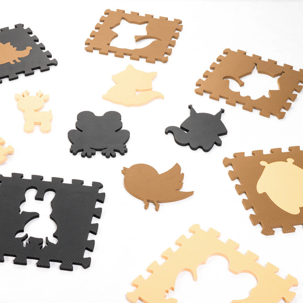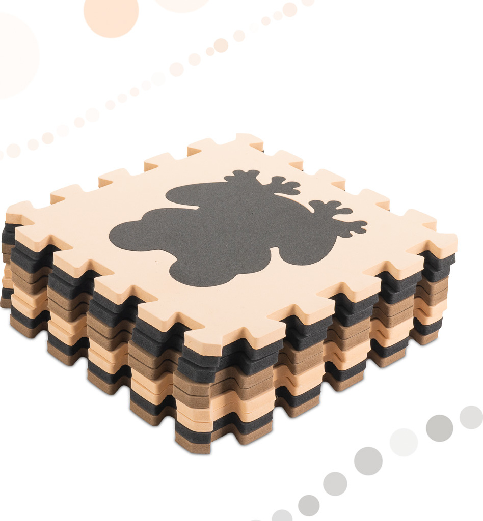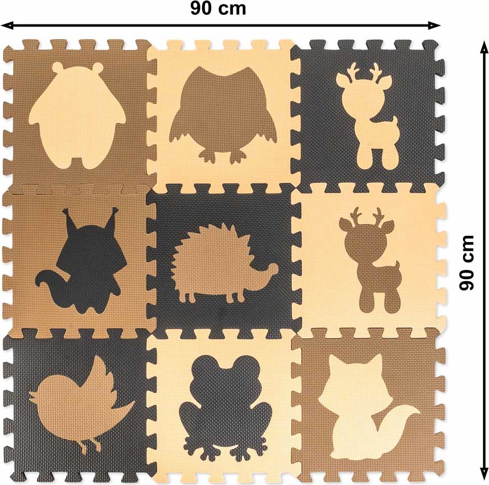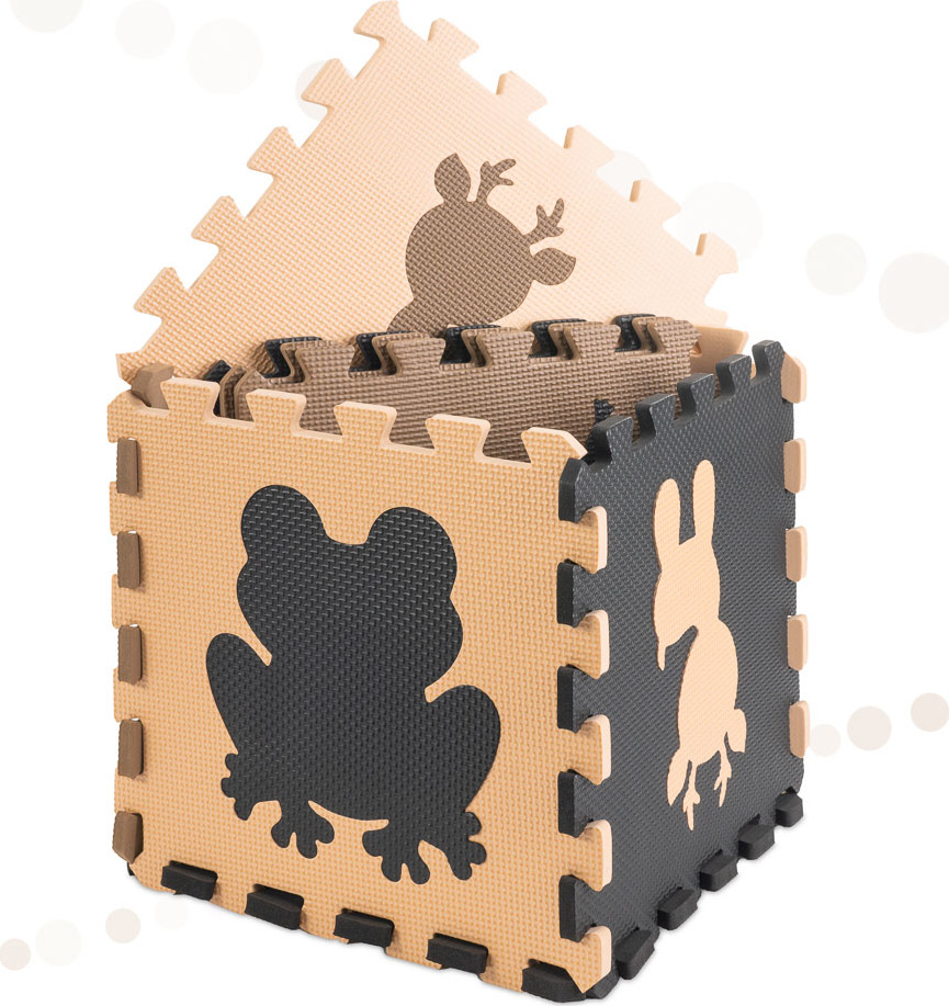 Pěnová puzzle podložka pro děti 9 prvků - béžová/hnědá/černá - 85cm x 85cm x 1 cm