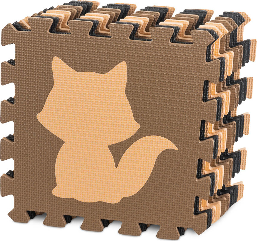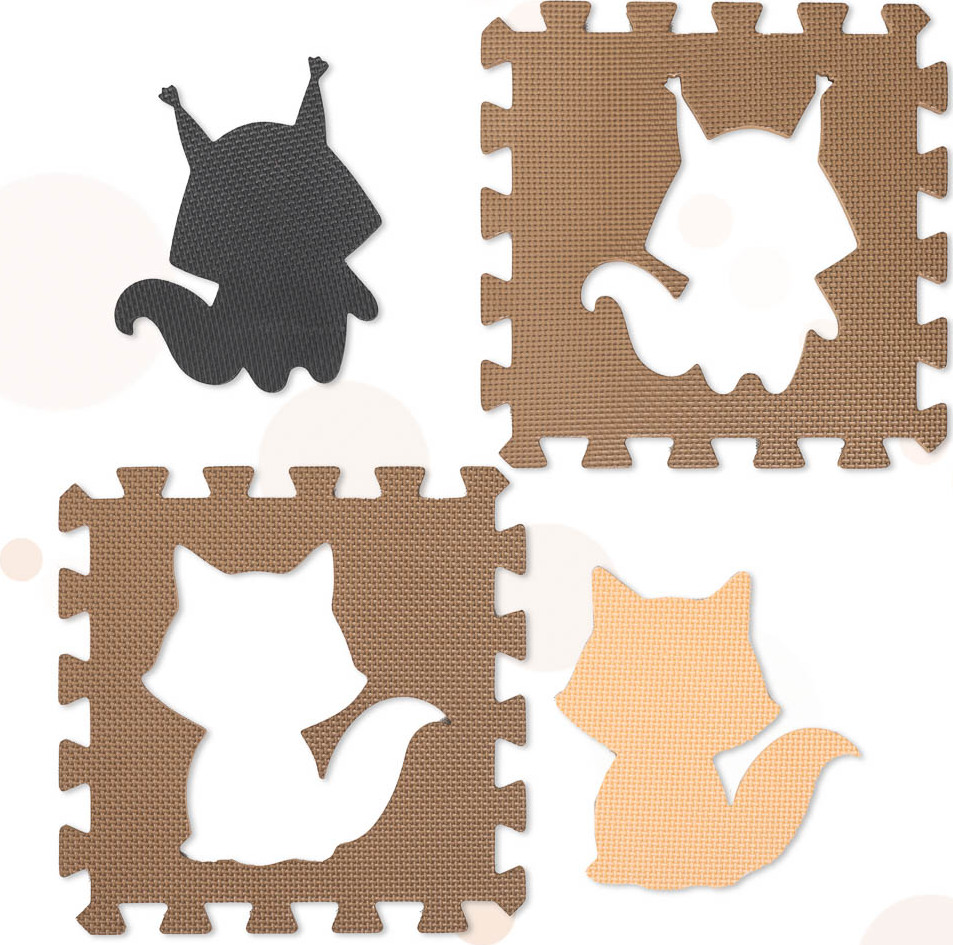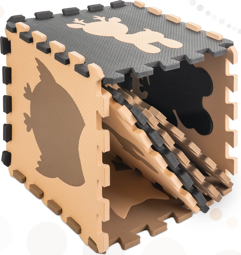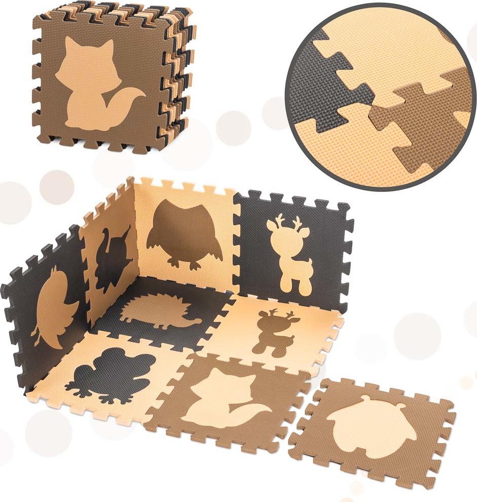 Pěnová puzzle podložka pro děti 9 prvků - béžová/hnědá/černá - 85cm x 85cm x 1 cm