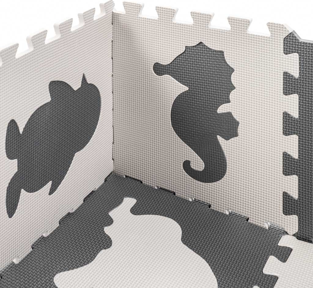 Pěnová puzzle podložka pro děti 9 prvků - šedá/ecru - 85cm x 85cm x 1cm
