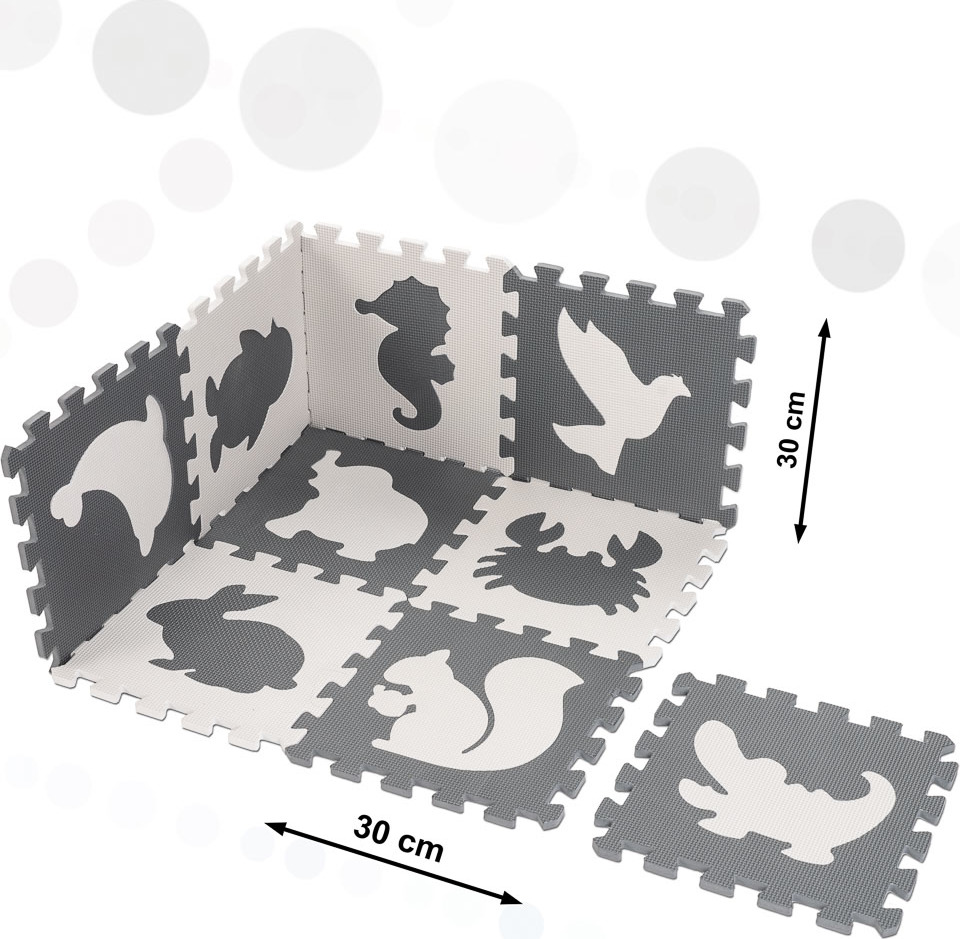 Jaká je největší výhoda skládaček? To, že rostou s vaším dítětem! Při prvních krůčcích tlumí měkká pěna všechny pády a zabraňuje otlakům na dětských chodidlech. Odnímatelné prvky jsou ideální pro výuku rozpoznávání tvarů. Dítě přiřadí vzory k odpovídajícím otvorům. Živé barvy a zajímavé tvary upoutají pozornost batolat. Velké pěnové skládačky jsou tou správnou volbou pro kreativní a poutavou hru. Můžete si být jisti, že vaše dítě nebude mít čas na nudu.