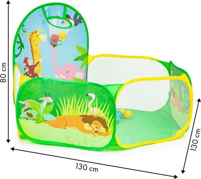Suchý bazén s míčky s motivem džungle. Bazén zaujme svou veselou barevností na první pohled a zajistí zábavu na dlouhou dobu.