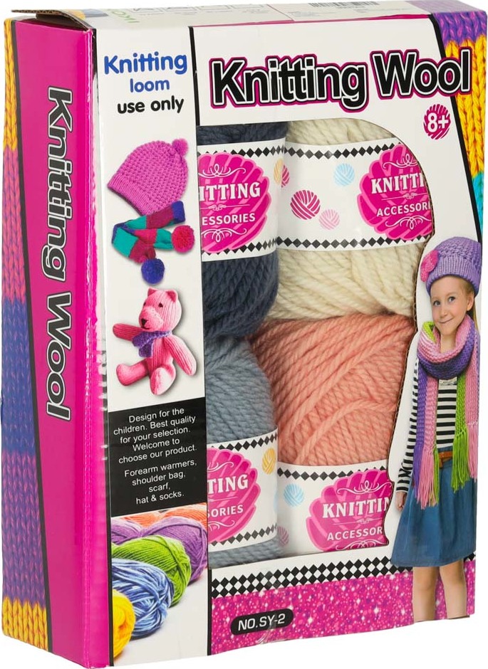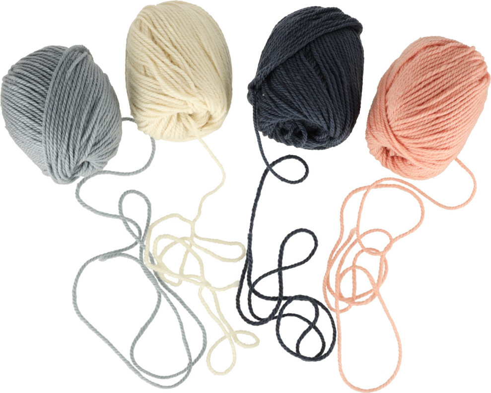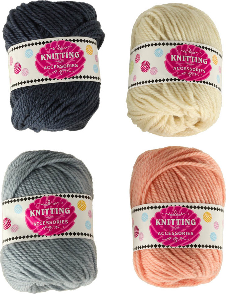 Sada čtyř háčkovacích a pletacích přízí. Ideální pro tvořivé projekty, jako jsou čepice, šály a ponožky. Každá příze je k dispozici v jiné barvě: krémové, šedé, tmavě modré a oranžové. Příze jsou vyrobeny ze 70 % polyesteru a 30 % akrylu. Každá příze měří přibližně 61 metrů na délku.