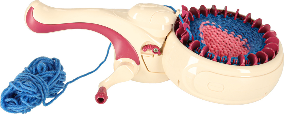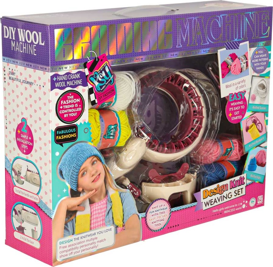 Sada obsahuje vše, co potřebujete k zahájení kreativní hry. Pletací sada obsahuje pevnou základnu s tělem stroje, pletací jehlici, háček a 5 barevných přízí (v odstínech růžové, žluté, fialové, bílé a modré), které jsou ideální pro tvorbu vlastních projektů. To umožňuje vašemu dítěti začít si hrát a ihned vytvořit svůj první projekt.