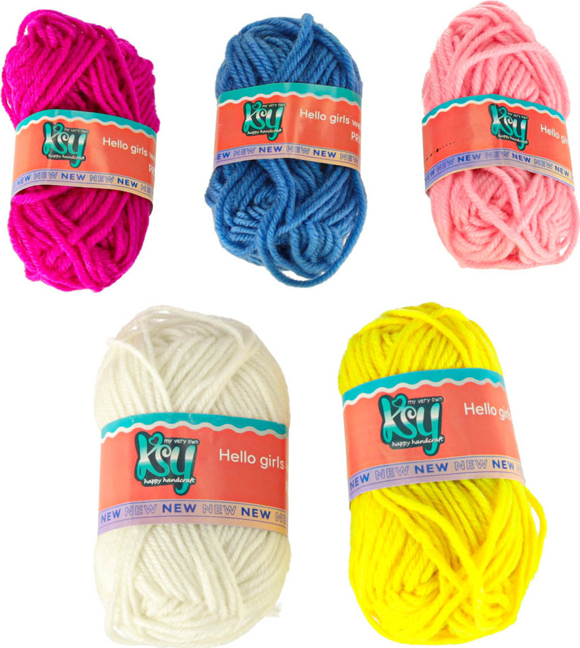- Barevná příze - 5 klubek v různých barvách, 70 % akryl, 30 % vlna