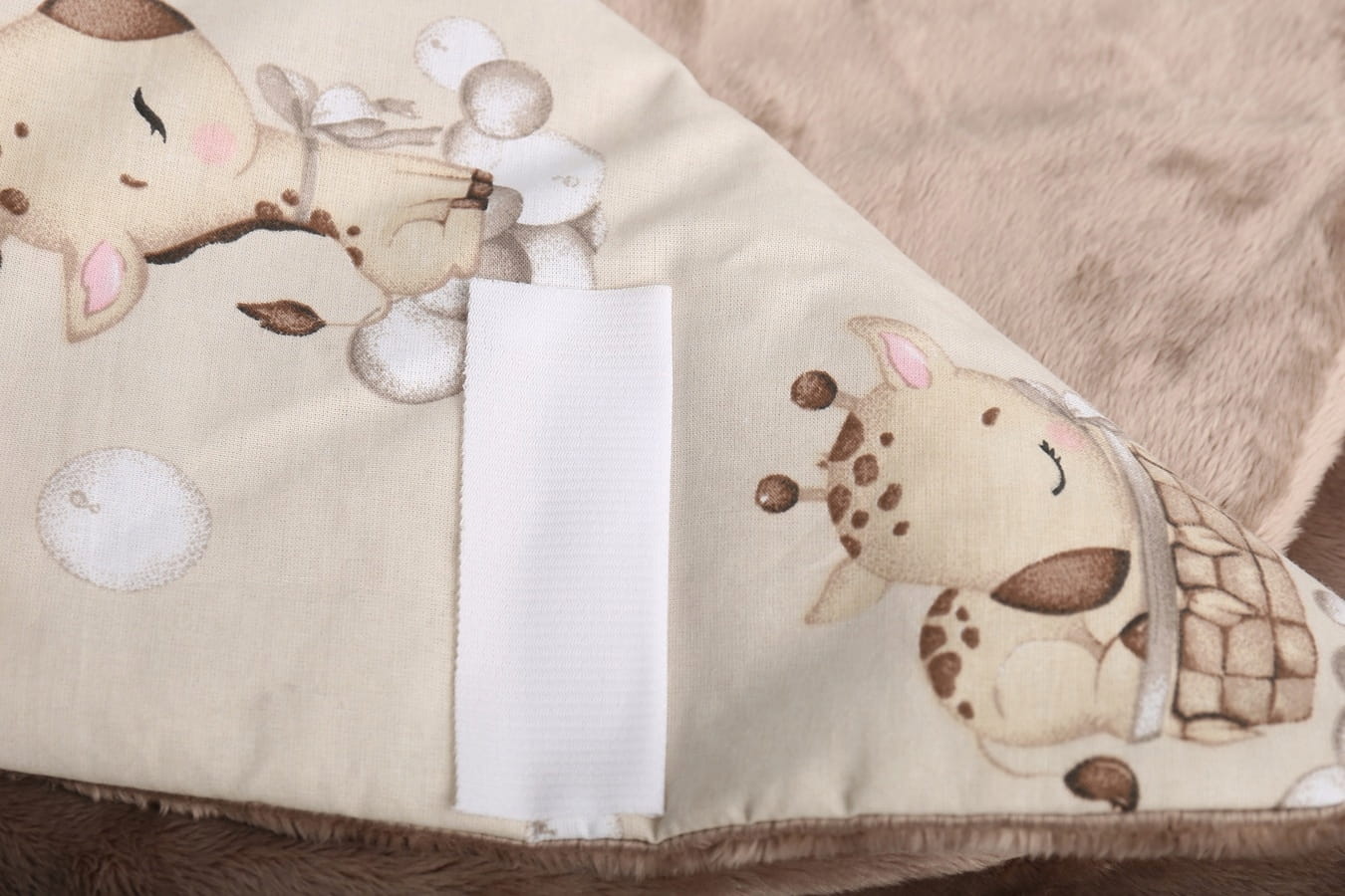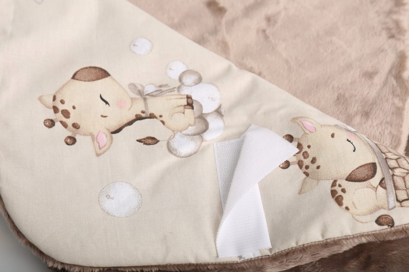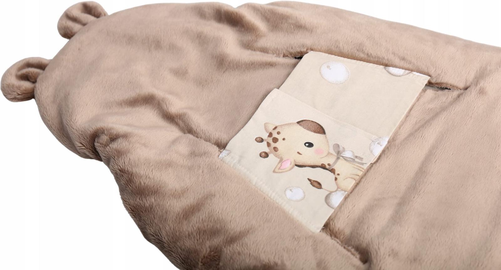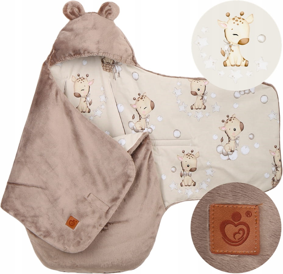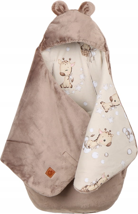 Plyšová zavinovačka s kapucí BABYMAM do autosedačky - Béžová žirafa/cappuccino