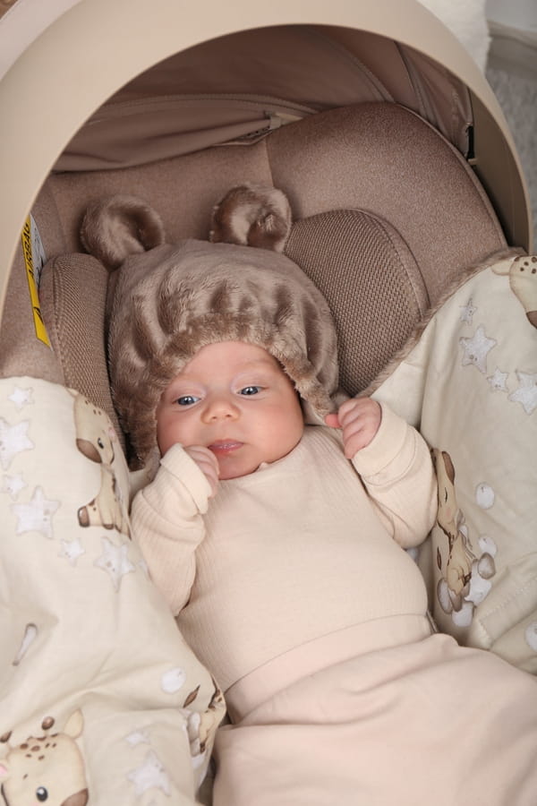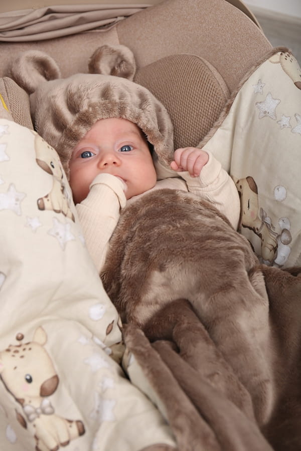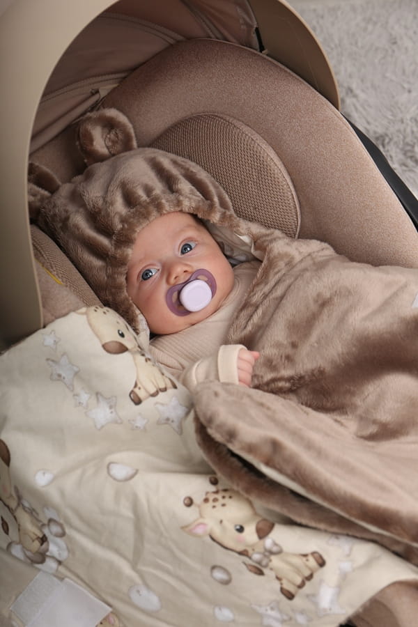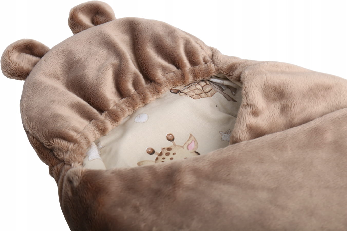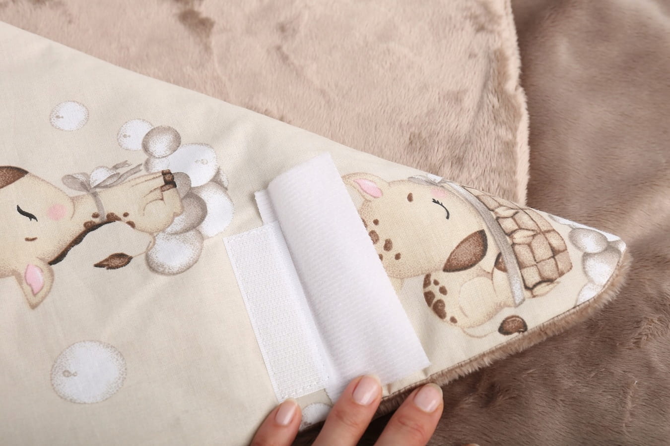 Plyšová zavinovačka s kapucí BABYMAM do autosedačky - Béžová žirafa/cappuccino