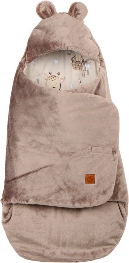Dopřejte svému miminku teplo a pohodlí při cestách autem nebo v kočárku i během chladnějších dní. Měkká, nadýchaná zavinovačka krásně miminko zabalí, ale zároveň jej neomezuje v pohybu. Bezpečně upevníte své dítě v sedačce díky nastavitelným otvorům, které jsou vhodné téměř ke každému modelu bezpečnostního pásu. Velikost snadno upravíte díky suchému zipu s všitou ochranou, která zabraňuje nechtěnému poškrábání. Široká spodní část ve tvaru U poskytuje volnost pro nohy. Zavinovačkou můžete zabalit i ruce, což je velmi příjemné pro novorozence, kteří se takto cítí příjemně a v bezpečí. Jakmile dítě povyroste, přizpůsobíte použití zavinovačky a umožníte více pohybu a volnosti. Zavinovačka je zdobena kapucí s oušky. Zavinovačka je vyrobena z měkkého příjemného plyše, vnitřní část je vyrobena ze 100% bavlny a výplň je antialergenní podobná prošívané dece. Díky tomu je zavinovačka měkká a prodyšná.