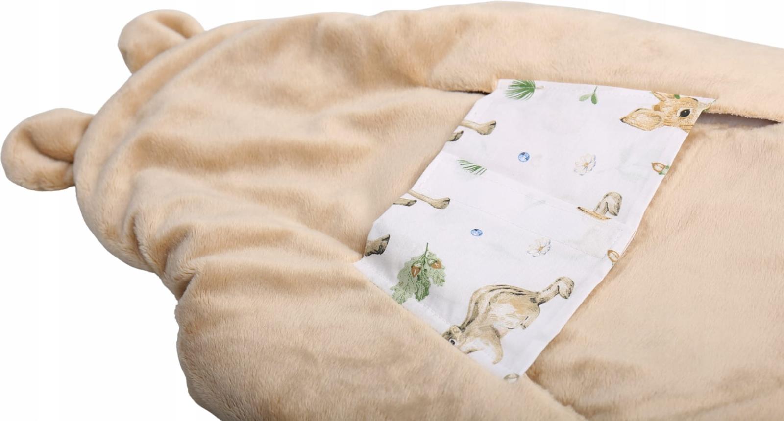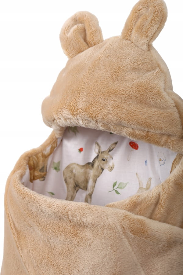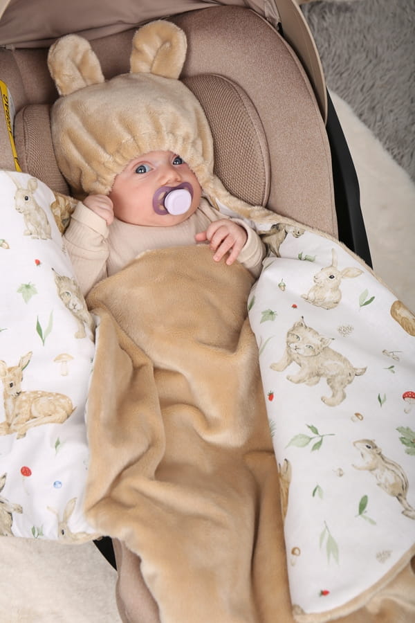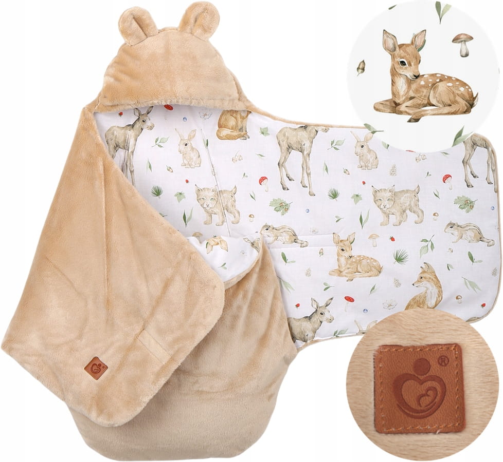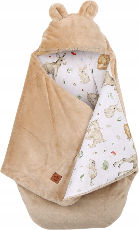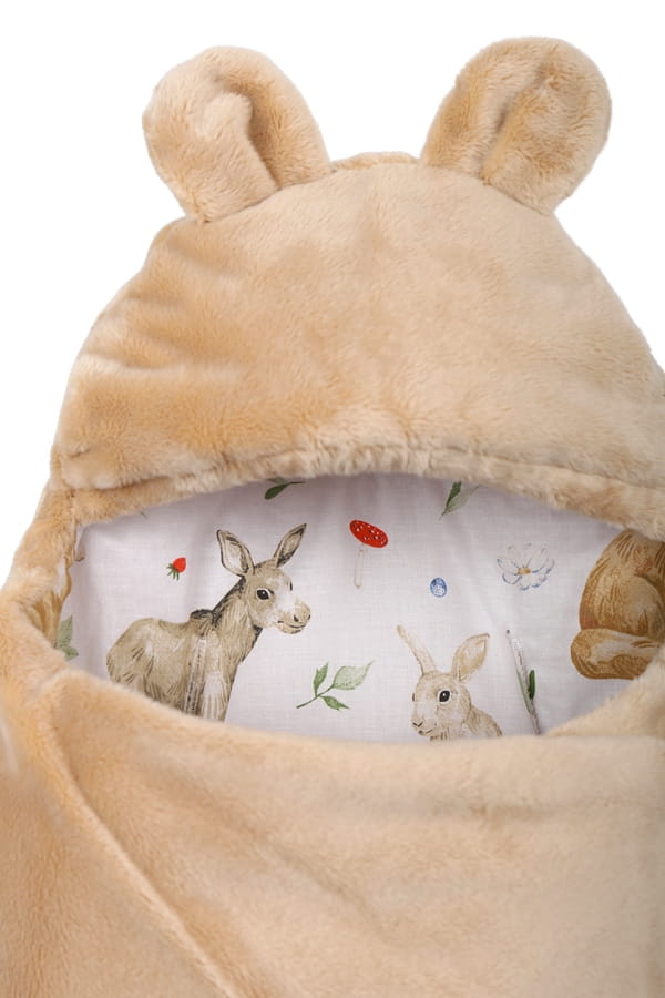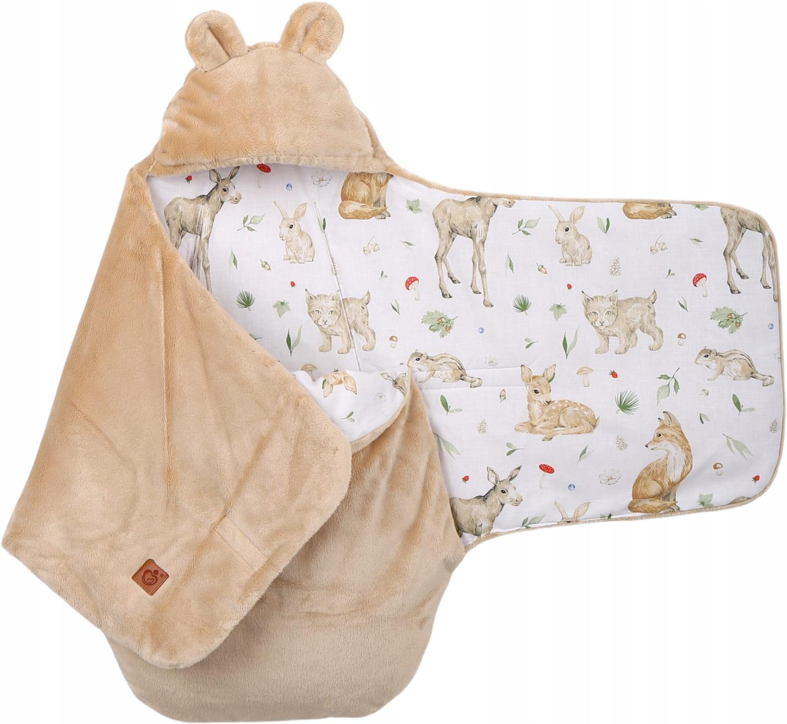 Plyšová zavinovačka s kapucí BABYMAM do autosedačky - Lesní zvířátka/béžová