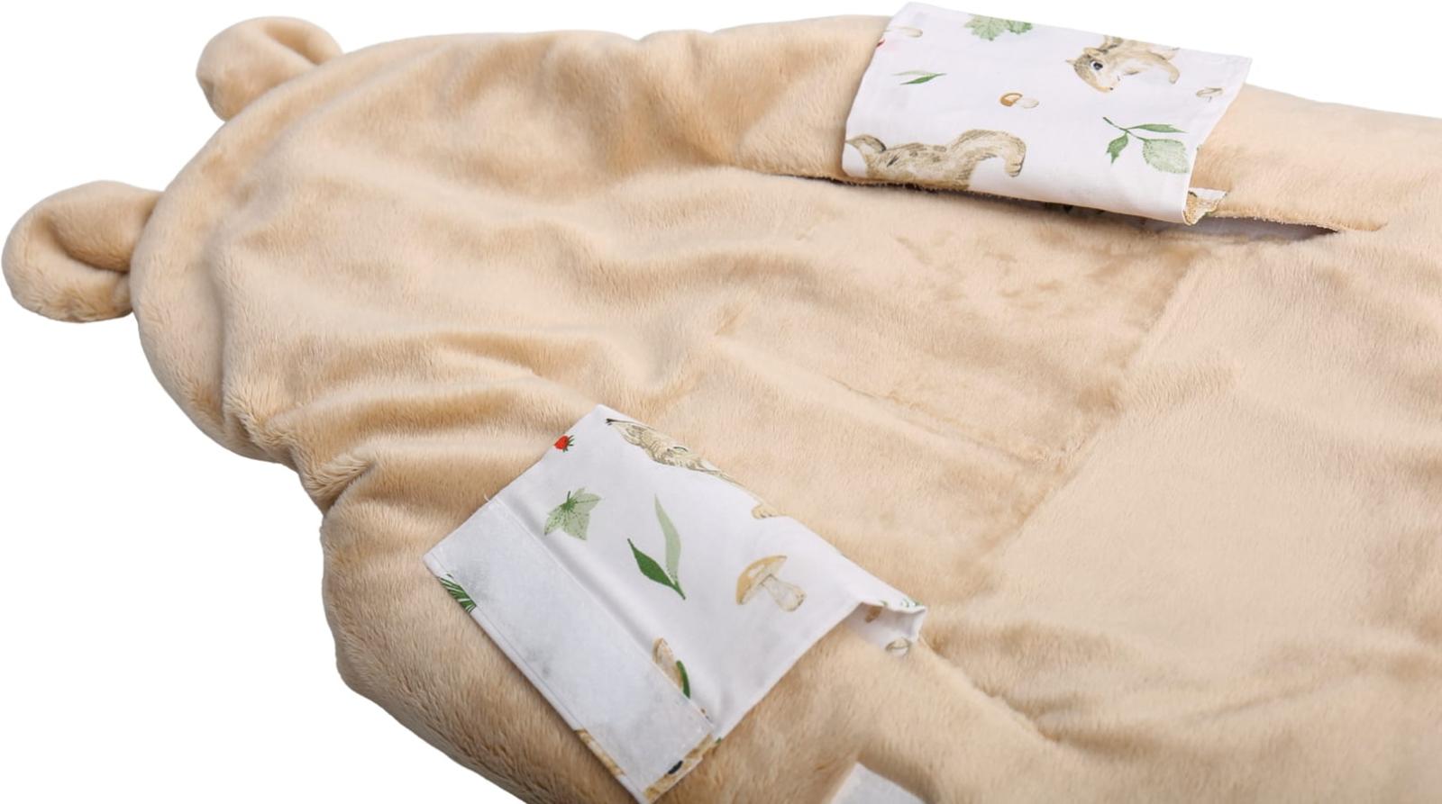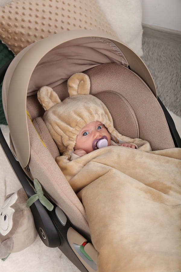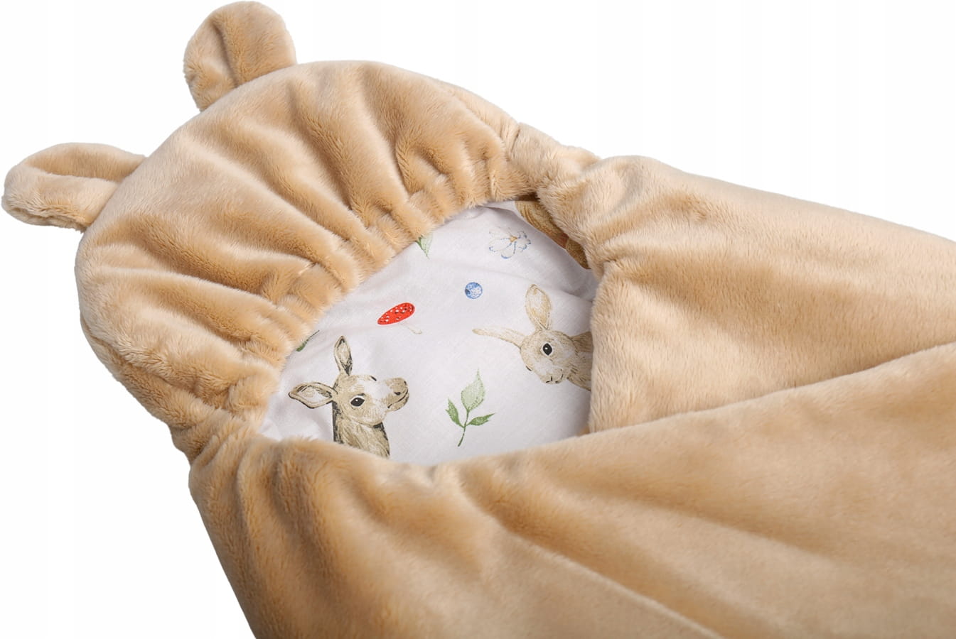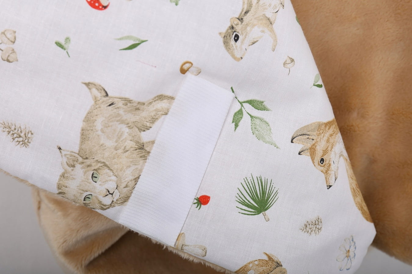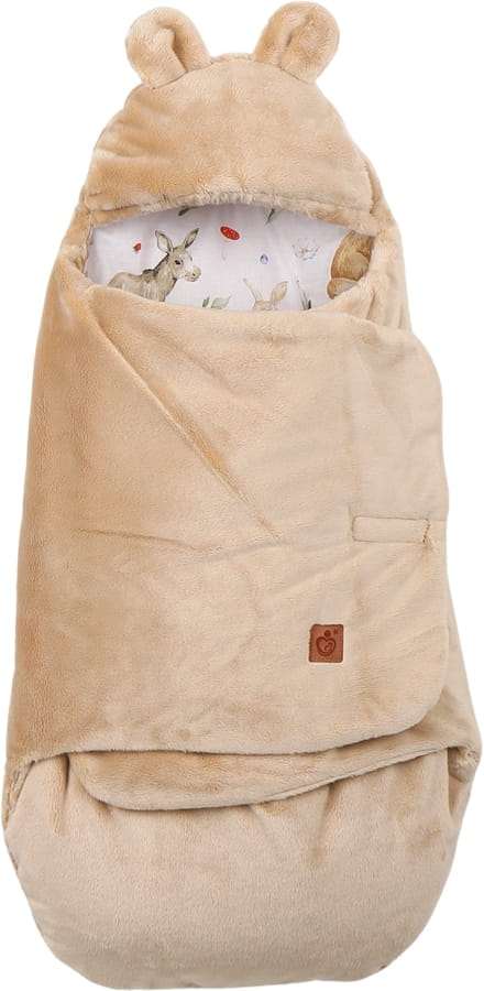 Plyšová zavinovačka s kapucí BABYMAM do autosedačky - Lesní zvířátka/béžová