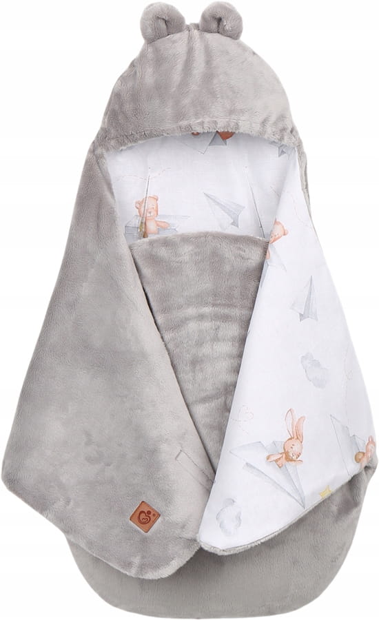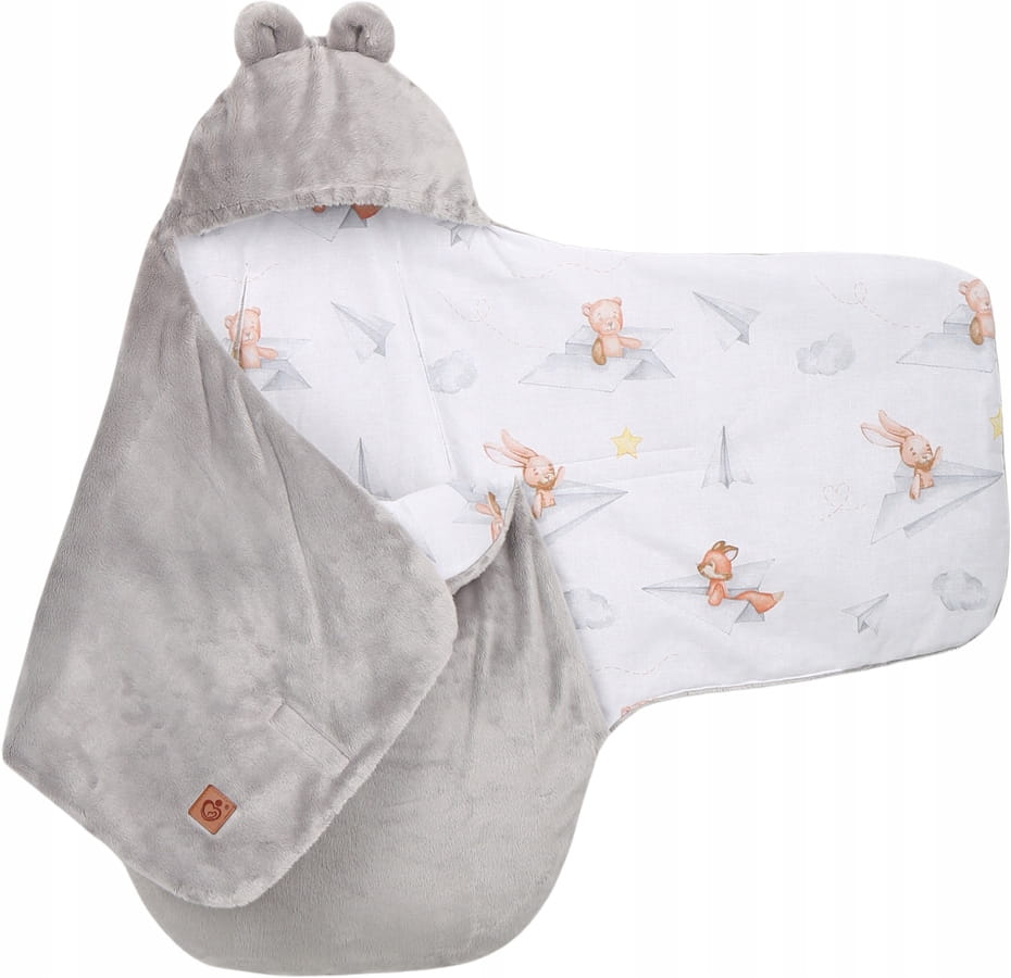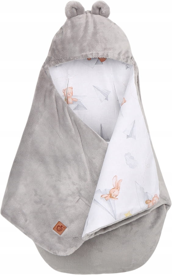 Plyšová zavinovačka s kapucí BABYMAM do autosedačky - Let vlaštovkou/šedá