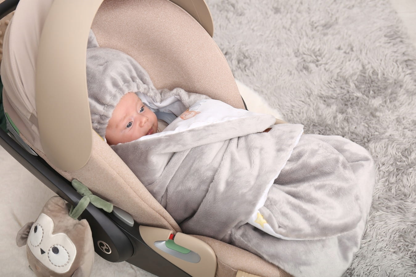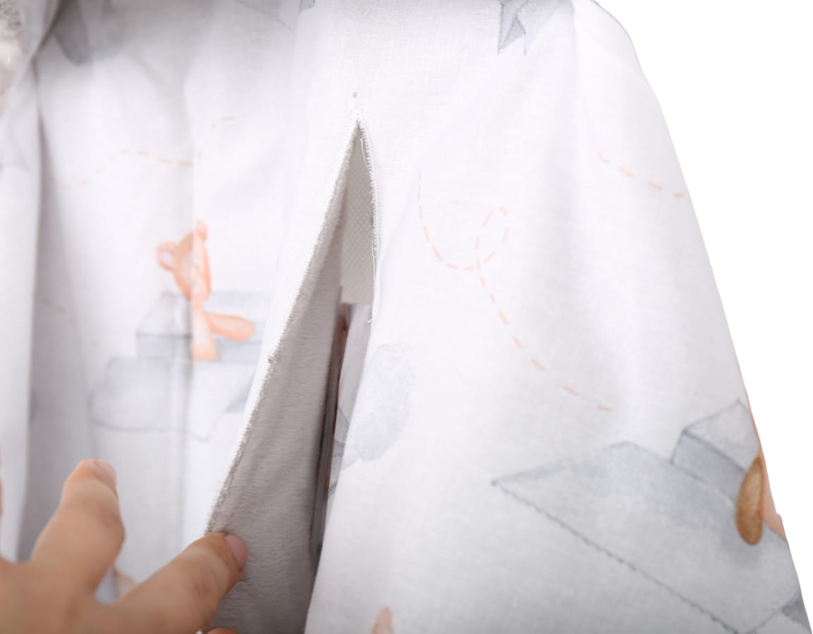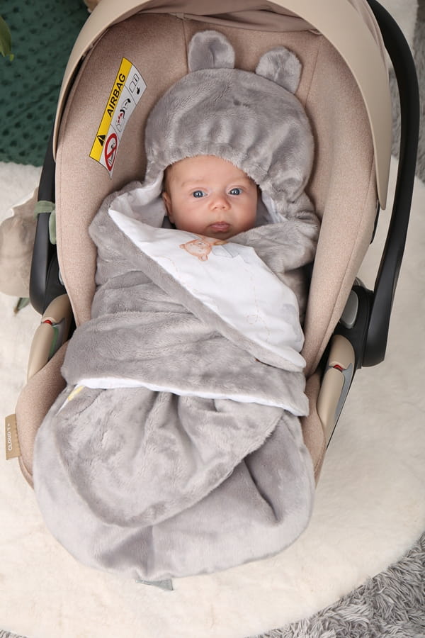 Dopřejte svému miminku teplo a pohodlí při cestách autem nebo v kočárku i během chladnějších dní. Měkká, nadýchaná zavinovačka krásně miminko zabalí, ale zároveň jej neomezuje v pohybu. Bezpečně upevníte své dítě v sedačce díky nastavitelným otvorům, které jsou vhodné téměř ke každému modelu bezpečnostního pásu. Velikost snadno upravíte díky suchému zipu s všitou ochranou, která zabraňuje nechtěnému poškrábání. Široká spodní část ve tvaru U poskytuje volnost pro nohy. Zavinovačkou můžete zabalit i ruce, což je velmi příjemné pro novorozence, kteří se takto cítí příjemně a v bezpečí. Jakmile dítě povyroste, přizpůsobíte použití zavinovačky a umožníte více pohybu a volnosti. Zavinovačka je zdobena kapucí s oušky. Zavinovačka je vyrobena z měkkého příjemného plyše, vnitřní část je vyrobena ze 100% bavlny a výplň je antialergenní podobná prošívané dece. Díky tomu je zavinovačka měkká a prodyšná.