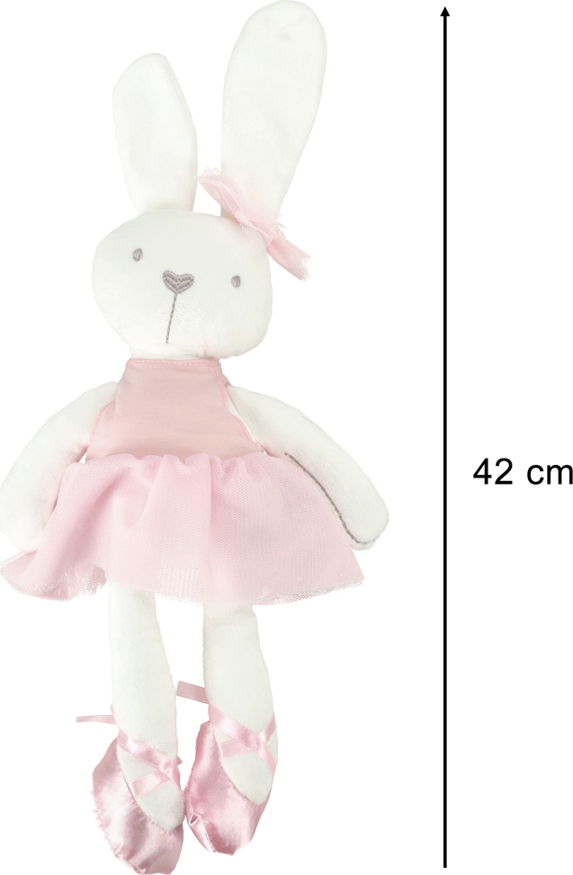 Tento měkký, plyšový králíček je perfektním společníkem pro každé malé dítě, ideální na mazlení a hraní. Je vyrobený z vysoce kvalitní bavlny a plněný plyšem, takže je příjemný na dotek. Jeho klasická bílá barva v kombinaci s růžovými šatičky mu dodává jedinečné kouzlo.