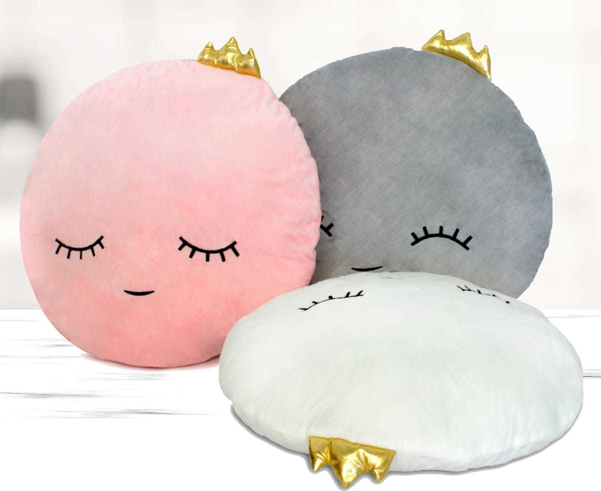 Dekorační polštářek o velikosti 35 cm je vyroben z plyšové polyesterové tkaniny s moderním designem. Jedná se o měkký a na dotek příjemný polštářek s jemným vzorem. Polštářek má originální kulatý tvar, který mu dodává mimořádně moderní vzhled. Polštář je vyroben z měkkého plyše a je vyplněn měkkými antialergickými silikonovými kuličkami. Oči a obličej jsou vyšívané. Krásný vzhled polštářku dotváří zlatá korunka, která mu dodává elegantní vzhled. Lze jej použít jako polštářek, plyšovou hračku pro vaše dítě nebo jako dekoraci v dětském pokoji. Vysoká kvalita použitých materiálů, preciznost a pevnost zpracování zaručují dlouhou životnost při používání.