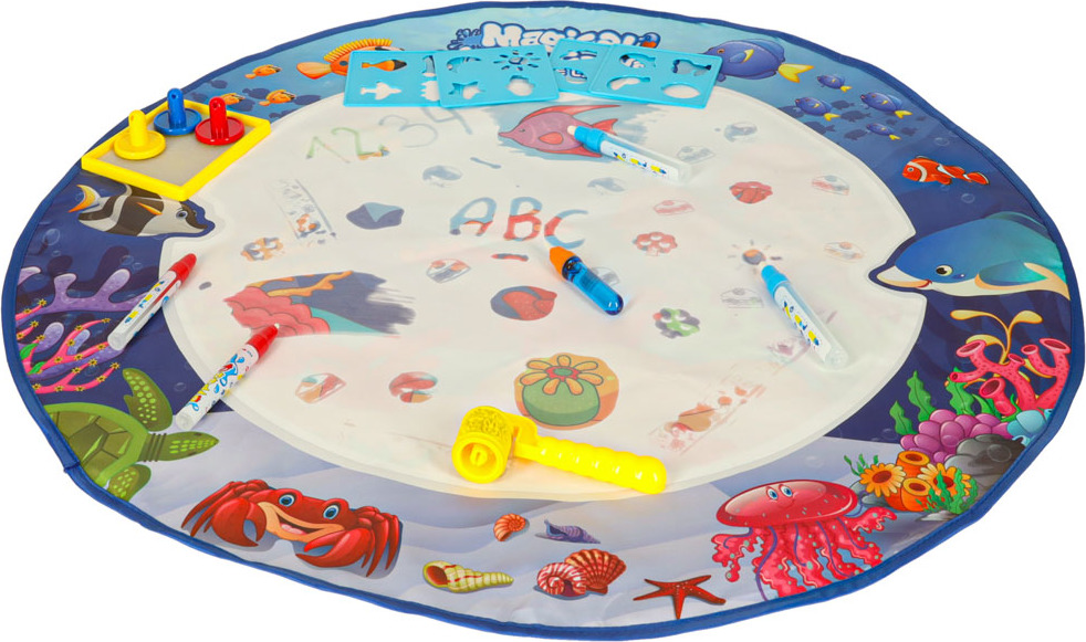 Vzdělávací vodní podložka nejen baví, ale také učí. Na jejím povrchu se nacházejí speciální vzory, které se po působení vody odhalí. Podložka se skrytými obrázky naučí vaše dítě rozpoznávat tvary, barvy, písmena nebo zvířata. Je to skvělá pomůcka pro učení hrou -podporuje smyslový a kognitivní rozvoj. Ideální pro děti od 3 let.