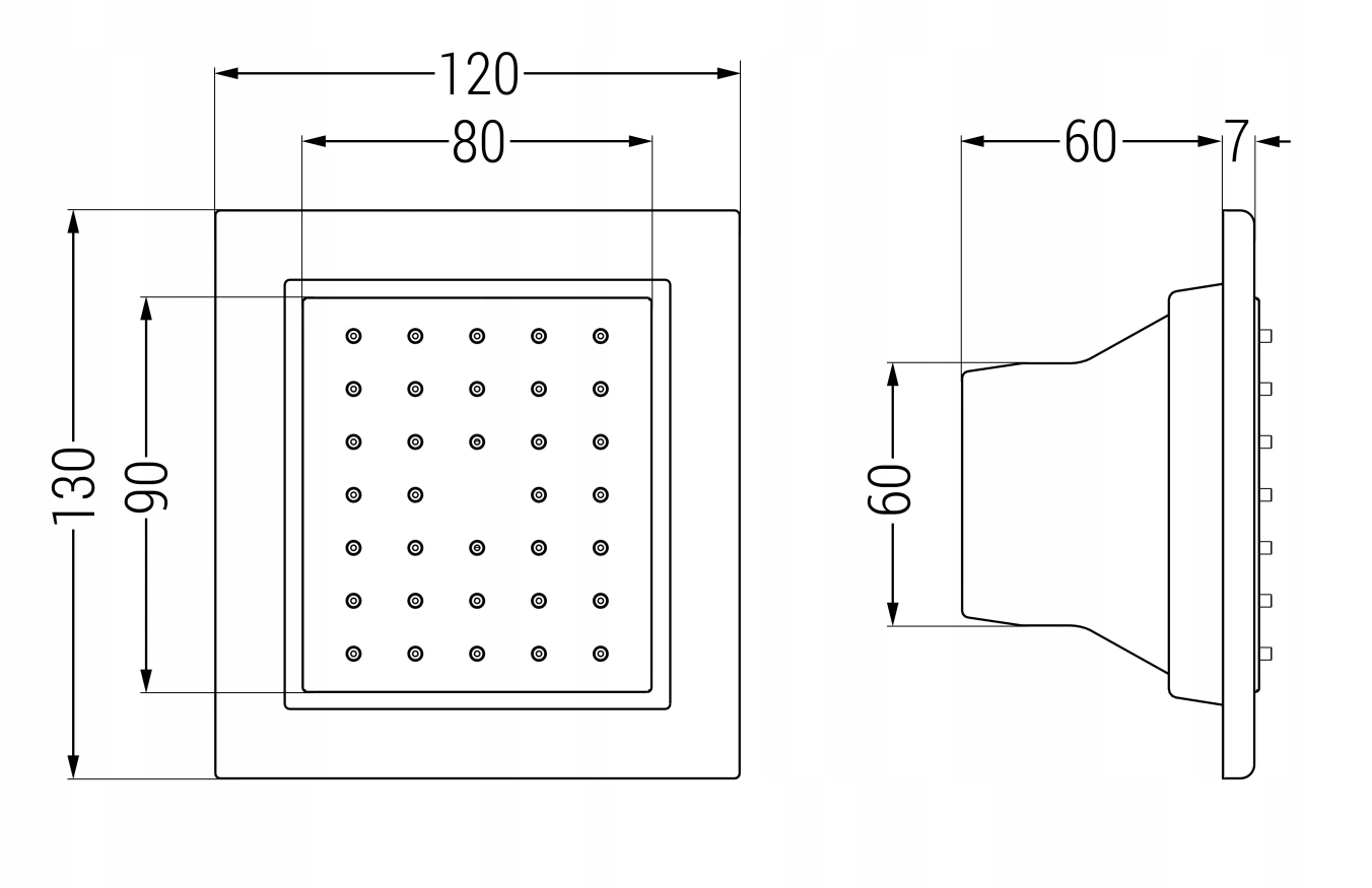 Podomítková boční sprchová tryska - hranatá - 12x13 cm - bílá