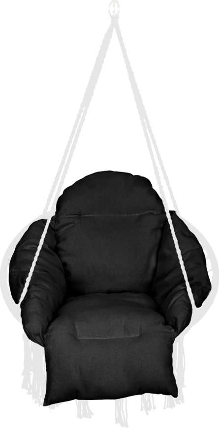 Velký polštář na houpačku „čápí hnízdo“ – oblíbená houpačka! Díky tomuto polštáři je houpačka mnohem pohodlnější. Pro větší pohodlí má polštář prodloužené části pro nohy a hlavu, které zabraňují zařezávání pevného rámu do těla. Polštář je černý. Černý povlak na polštář z vysoce kvalitní bavlny (65 %) a polyesteru (35 %) je nejen elegantní, ale také odolný a snadno se čistí.